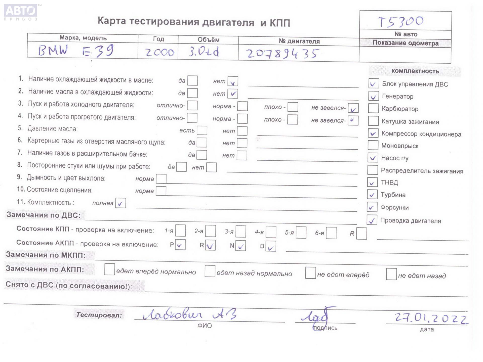 | Марка / Модель / Год: | BMW 5 E39 (1995-2003) 2000 |