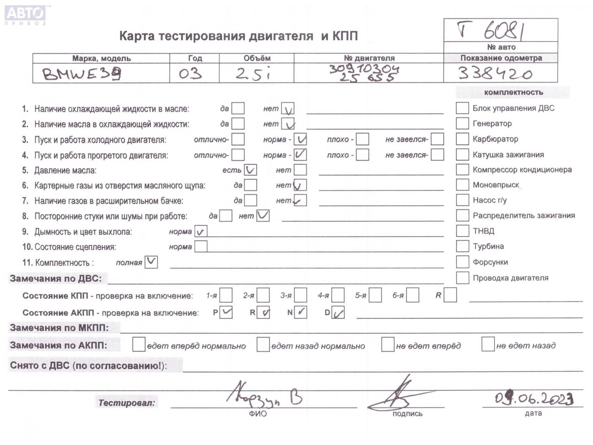 | Марка / Модель / Год: | BMW 5 E39 (1995-2003) 2003 |