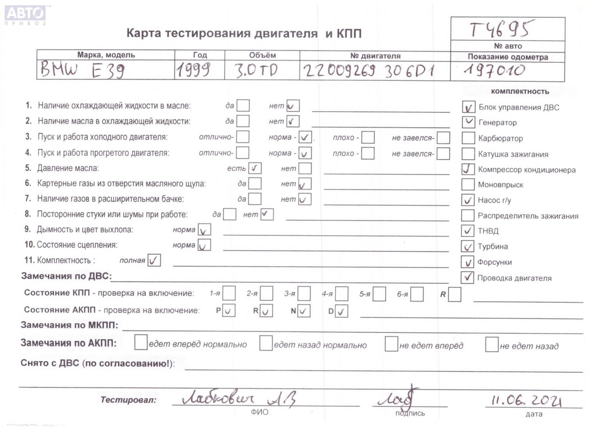 | Марка / Модель / Год: | BMW 5 E39 (1995-2003) 1999 |