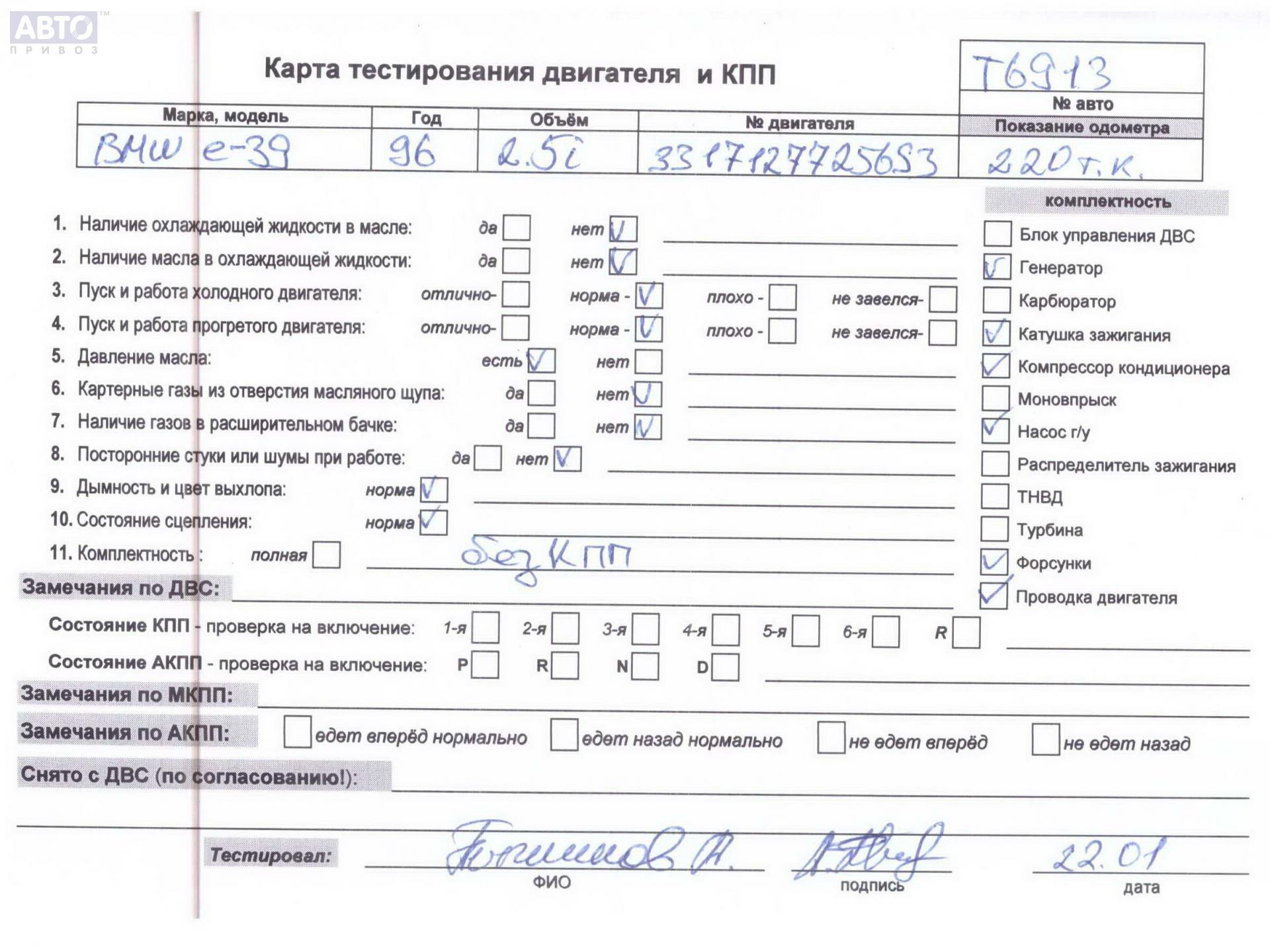 | Марка / Модель / Год: | BMW 5 E39 (1995-2003) 1996 |