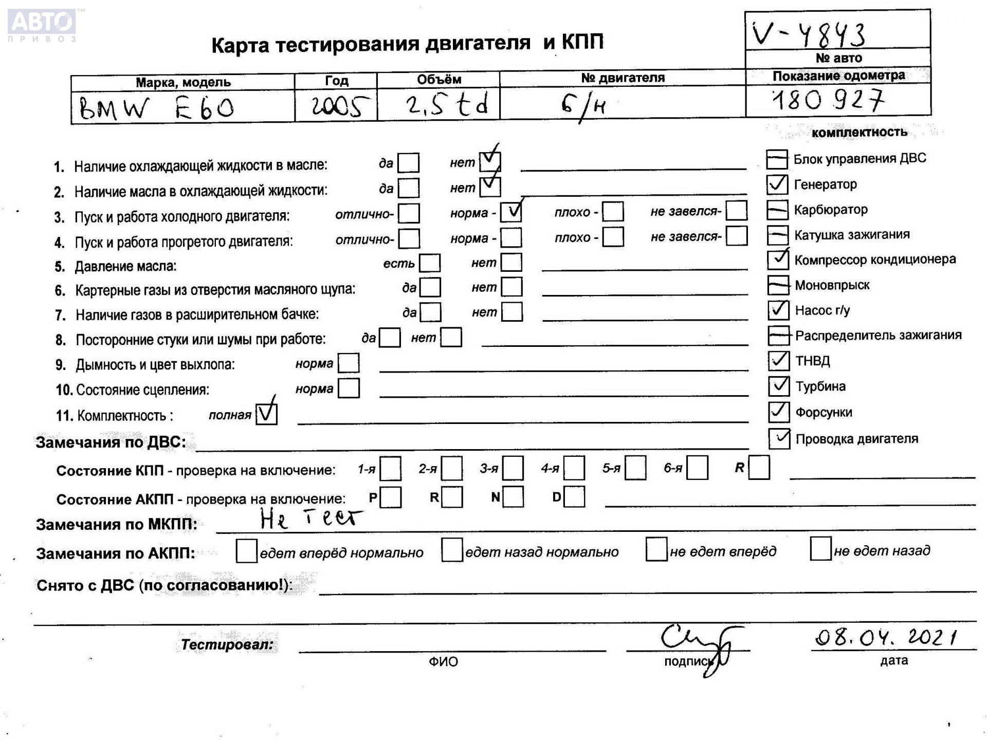 | Марка / Модель / Год: | BMW 5 E60/E61 (2003-2010) 2005 |