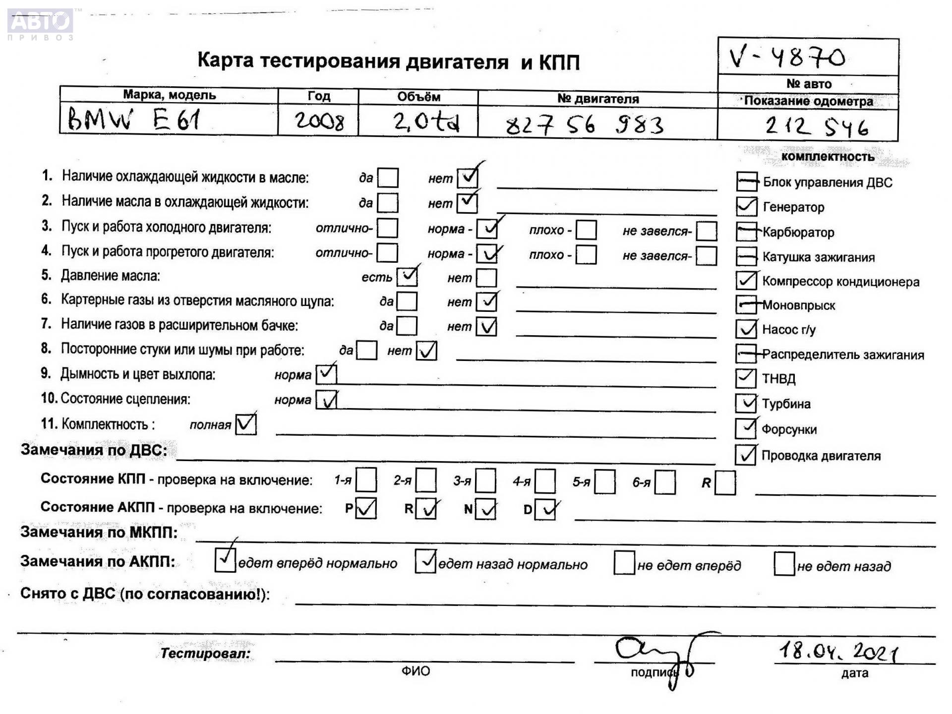| Марка / Модель / Год: | BMW 5 E60/E61 (2003-2010) 2008 |