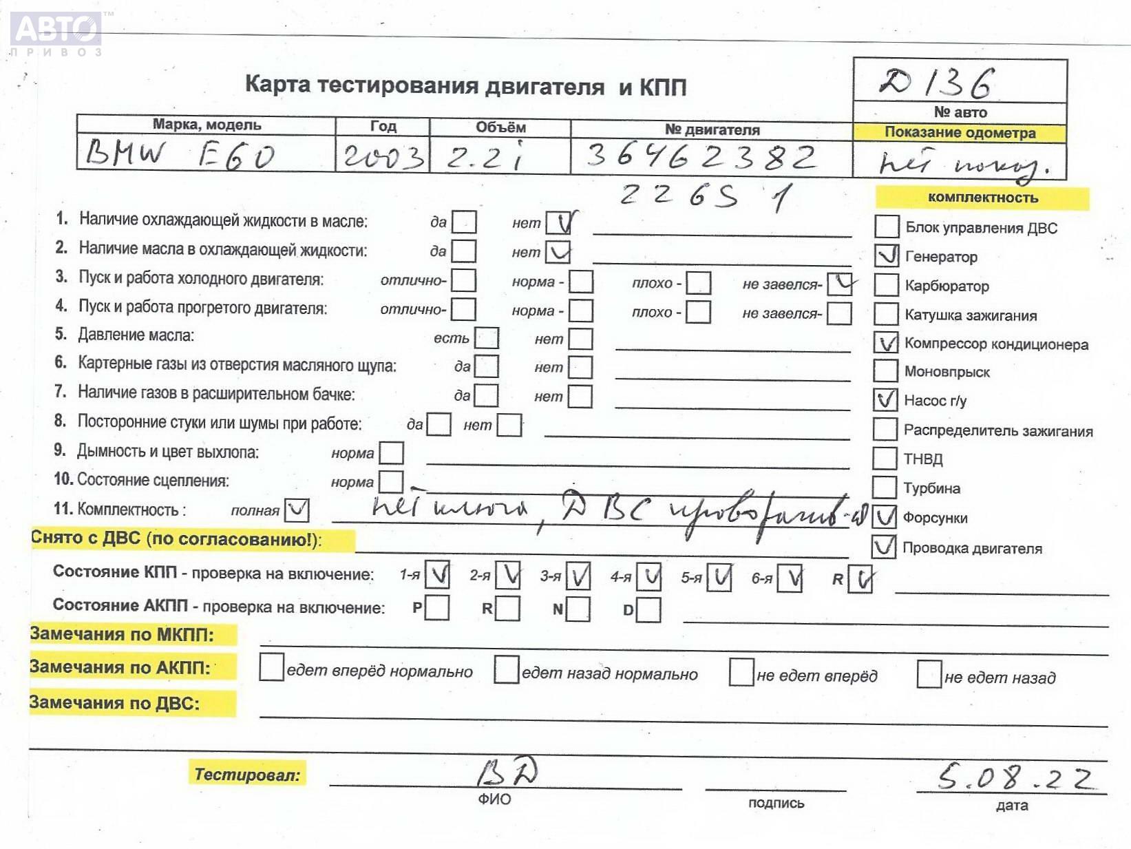 | Марка / Модель / Год: | BMW 5 E60/E61 (2003-2010) 2003 |