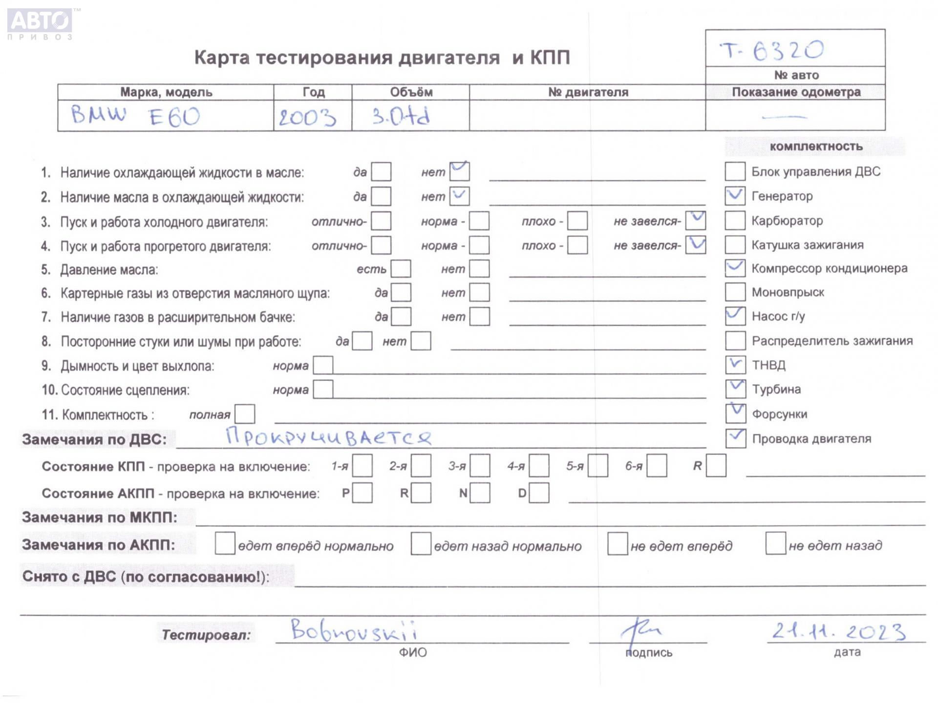 | Марка / Модель / Год: | BMW 5 E60/E61 (2003-2010) 2003 |