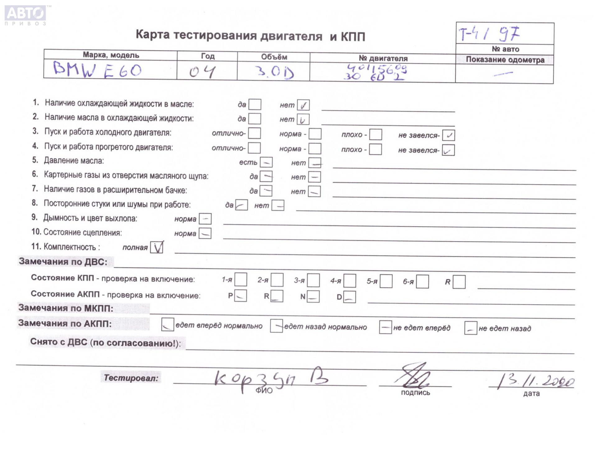 | Марка / Модель / Год: | BMW 5 E60/E61 (2003-2010) 2004 |