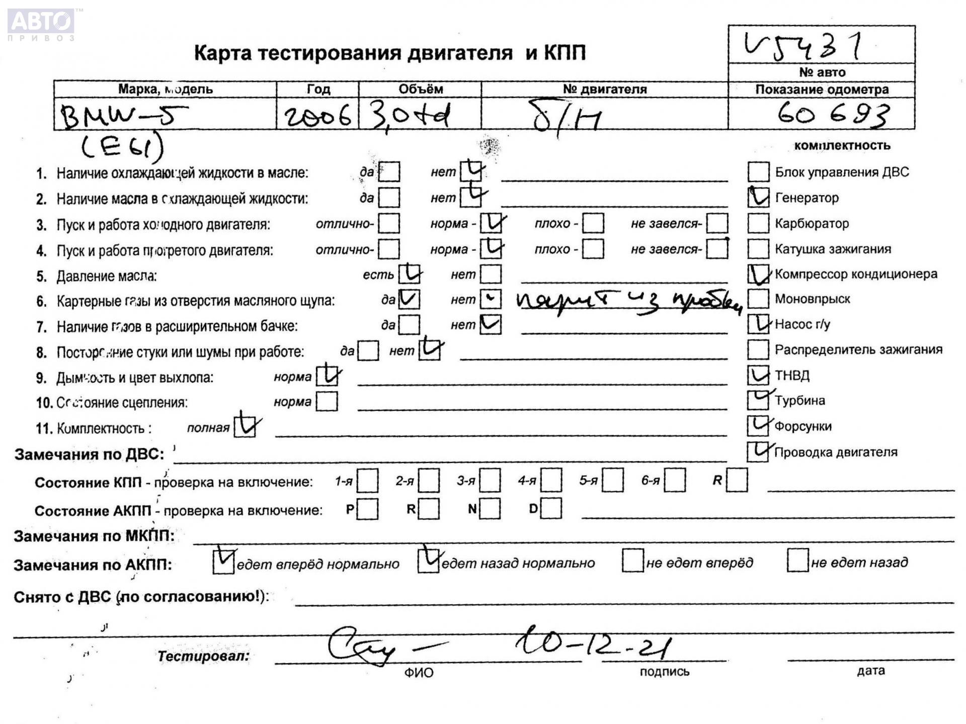| Марка / Модель / Год: | BMW 5 E60/E61 (2003-2010) 2006 |