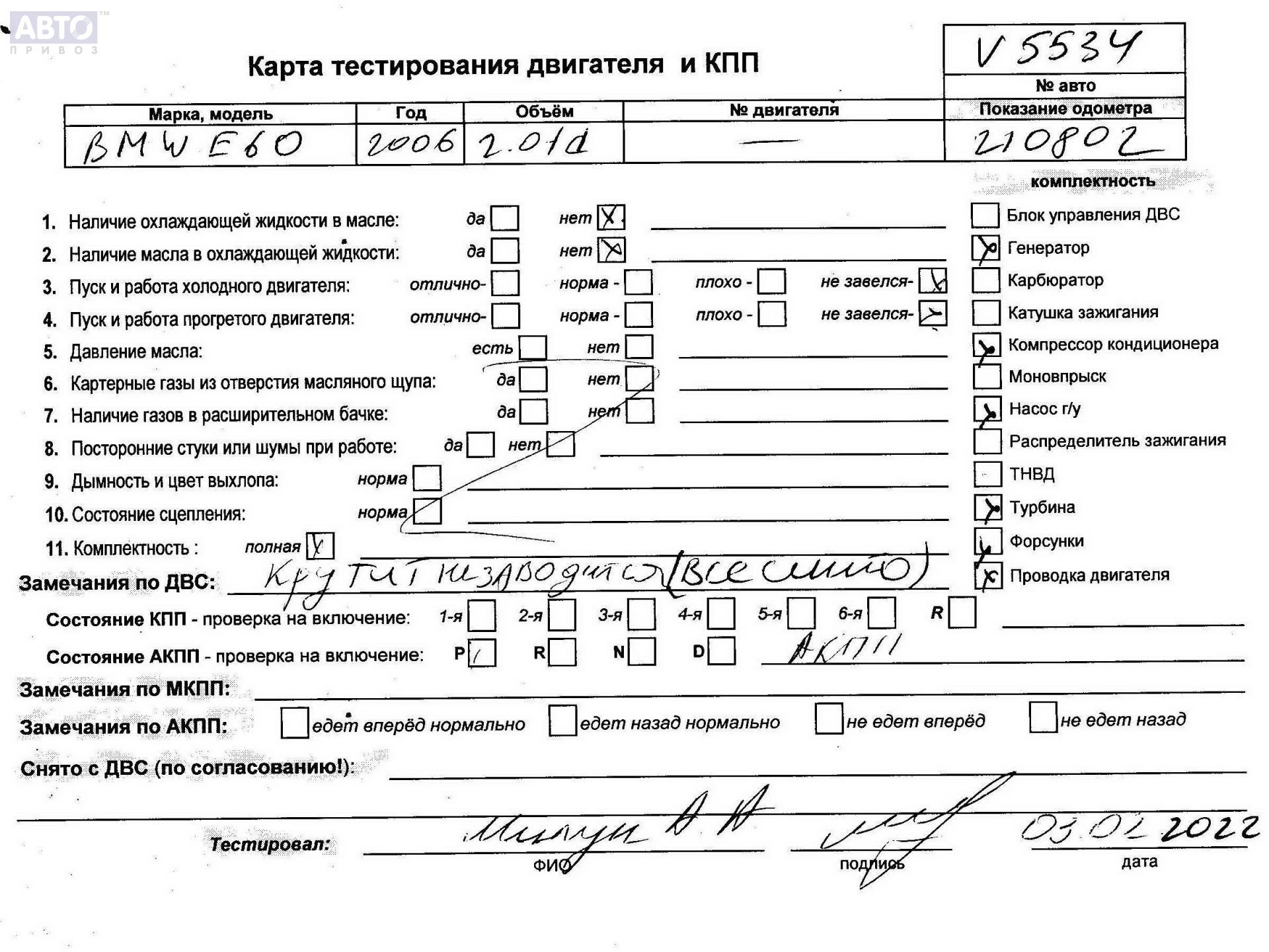 | Марка / Модель / Год: | BMW 5 E60/E61 (2003-2010) 2006 |