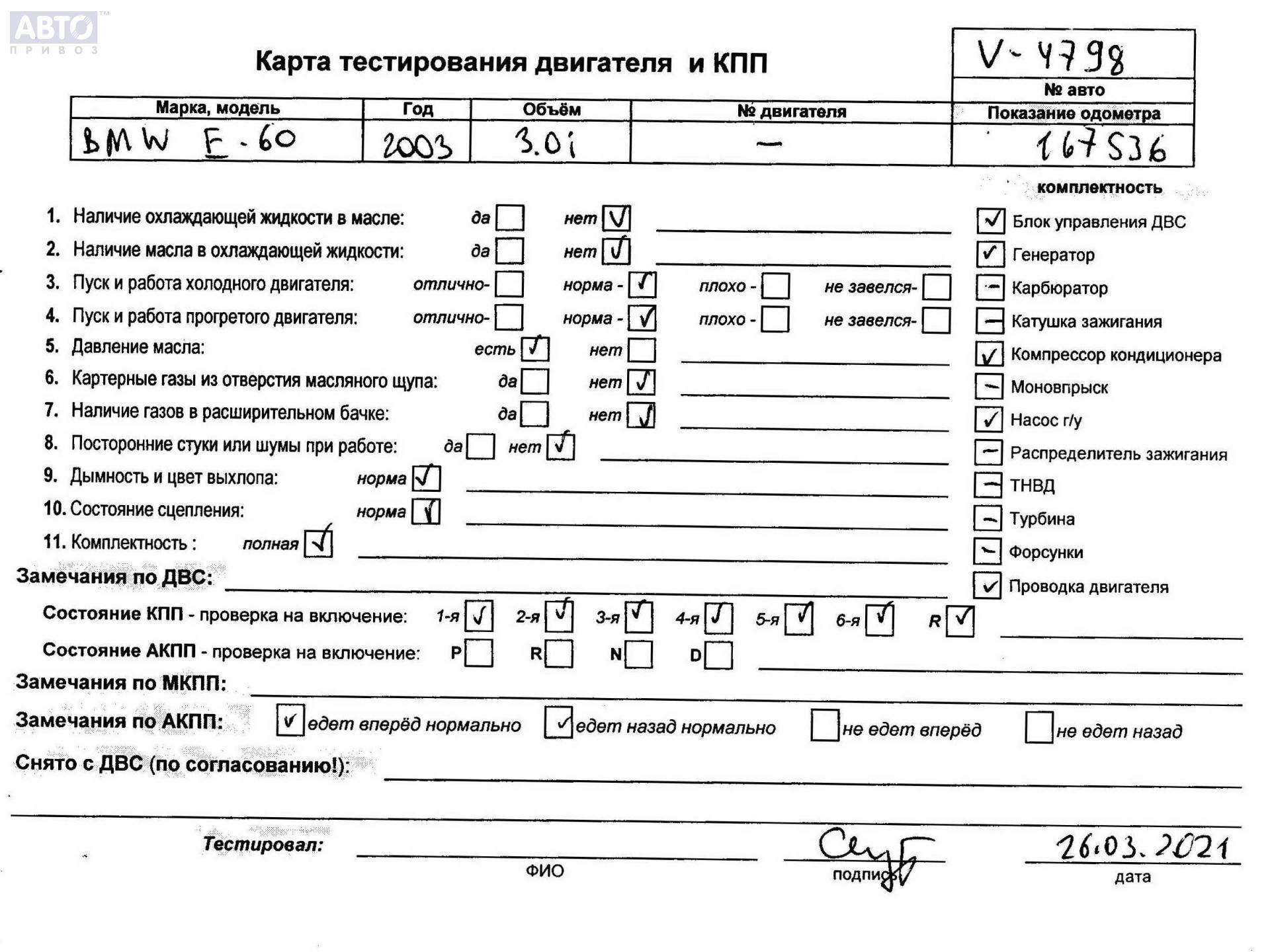 | Марка / Модель / Год: | BMW 5 E60/E61 (2003-2010) 2003 |