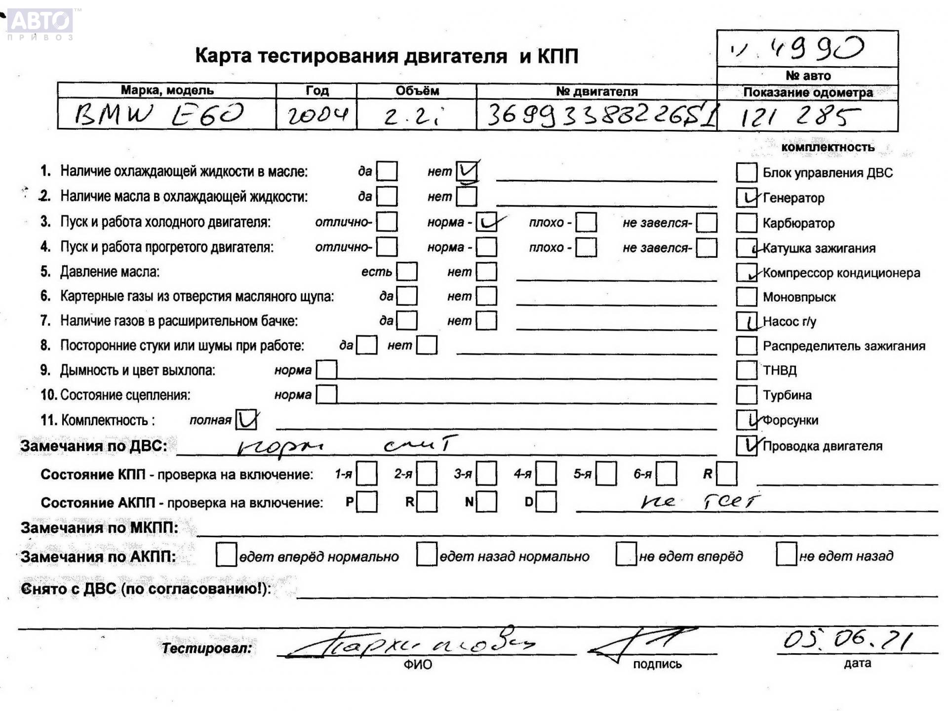 | Марка / Модель / Год: | BMW 5 E60/E61 (2003-2010) 2004 |