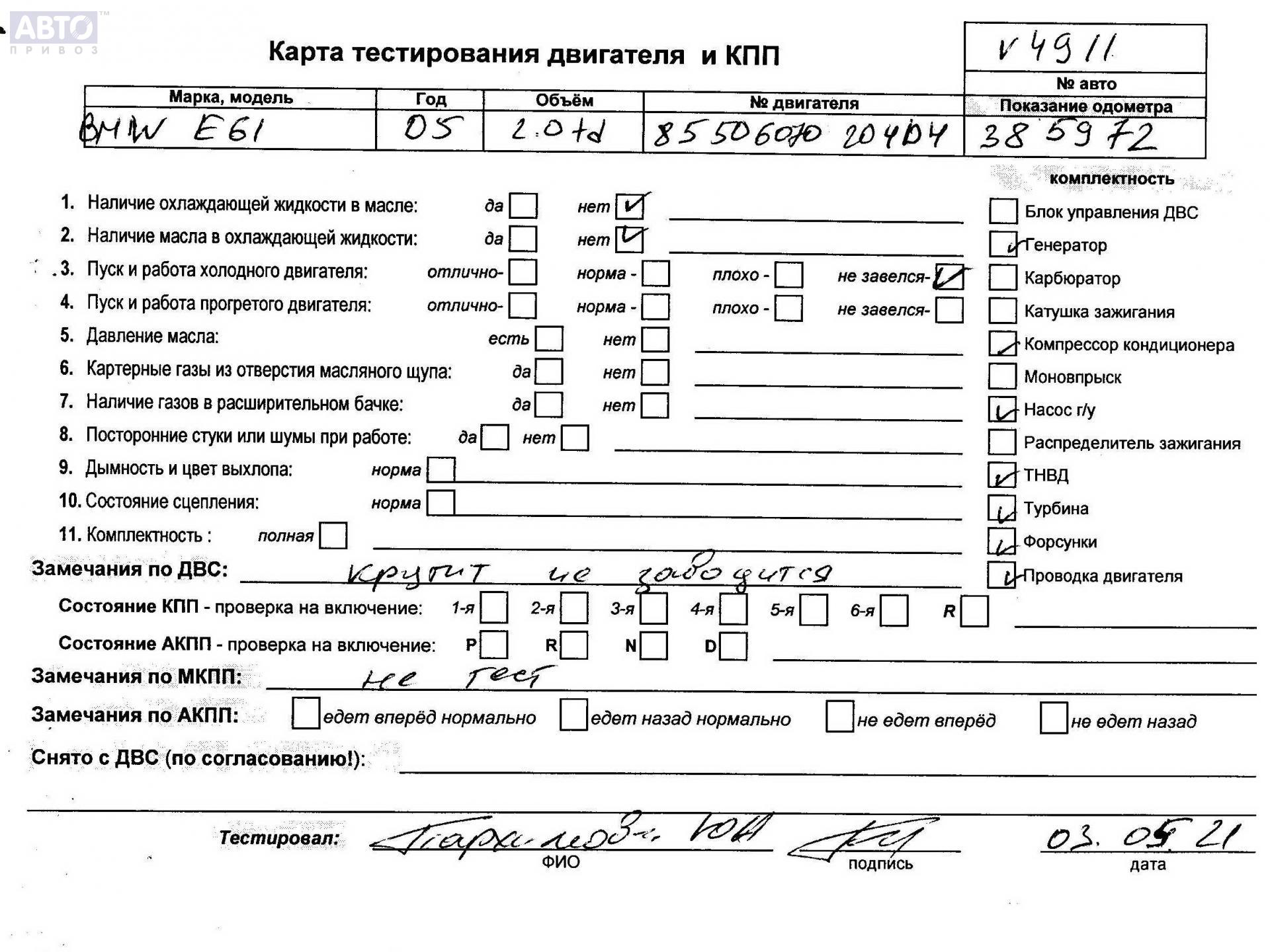 | Марка / Модель / Год: | BMW 5 E60/E61 (2003-2010) 2005 |