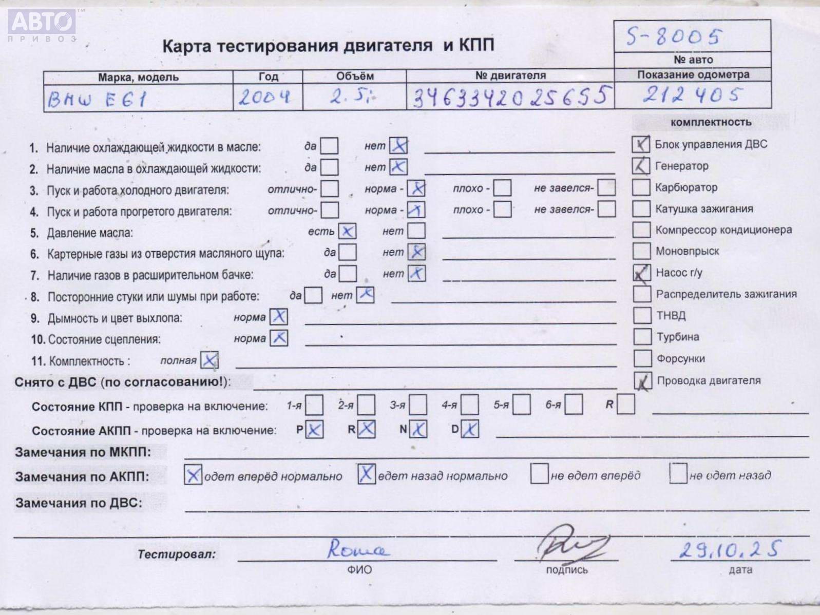 | Марка / Модель / Год: | BMW 5 E60/E61 (2003-2010) 2004 |