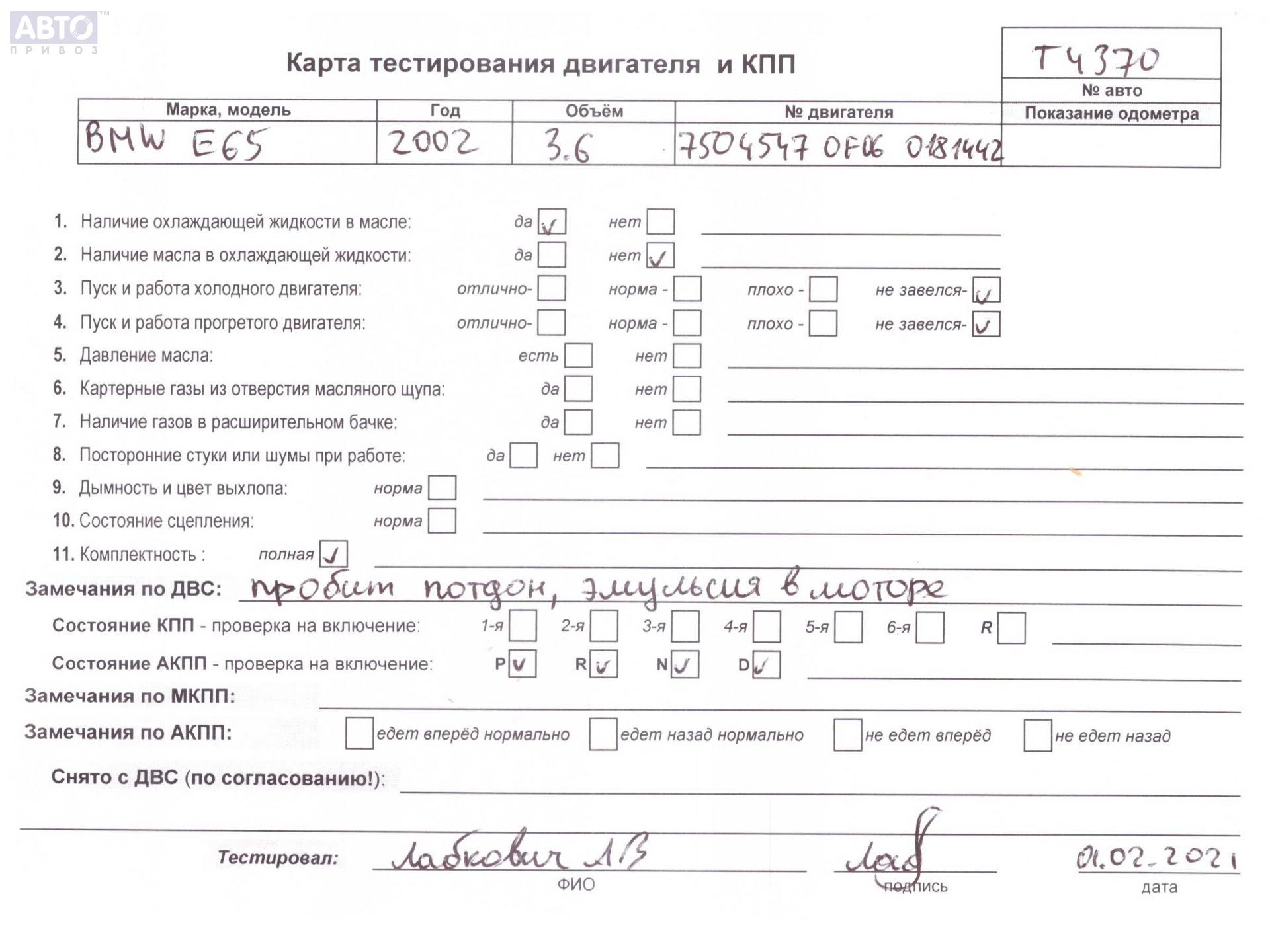 | Марка / Модель / Год: | BMW 7 E65/E66 (2001-2008) 2002 |