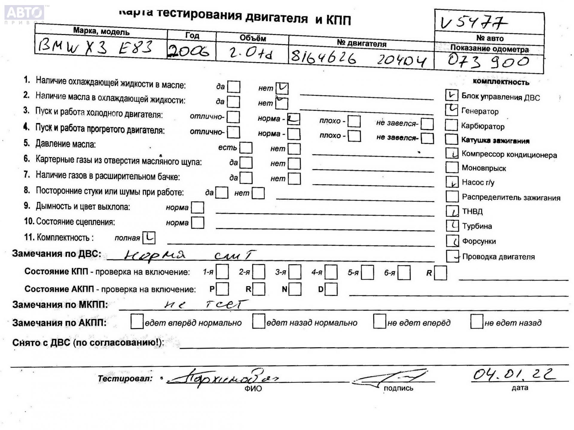 | Марка / Модель / Год: | BMW X3 E83 (2003-2010) 2006 |