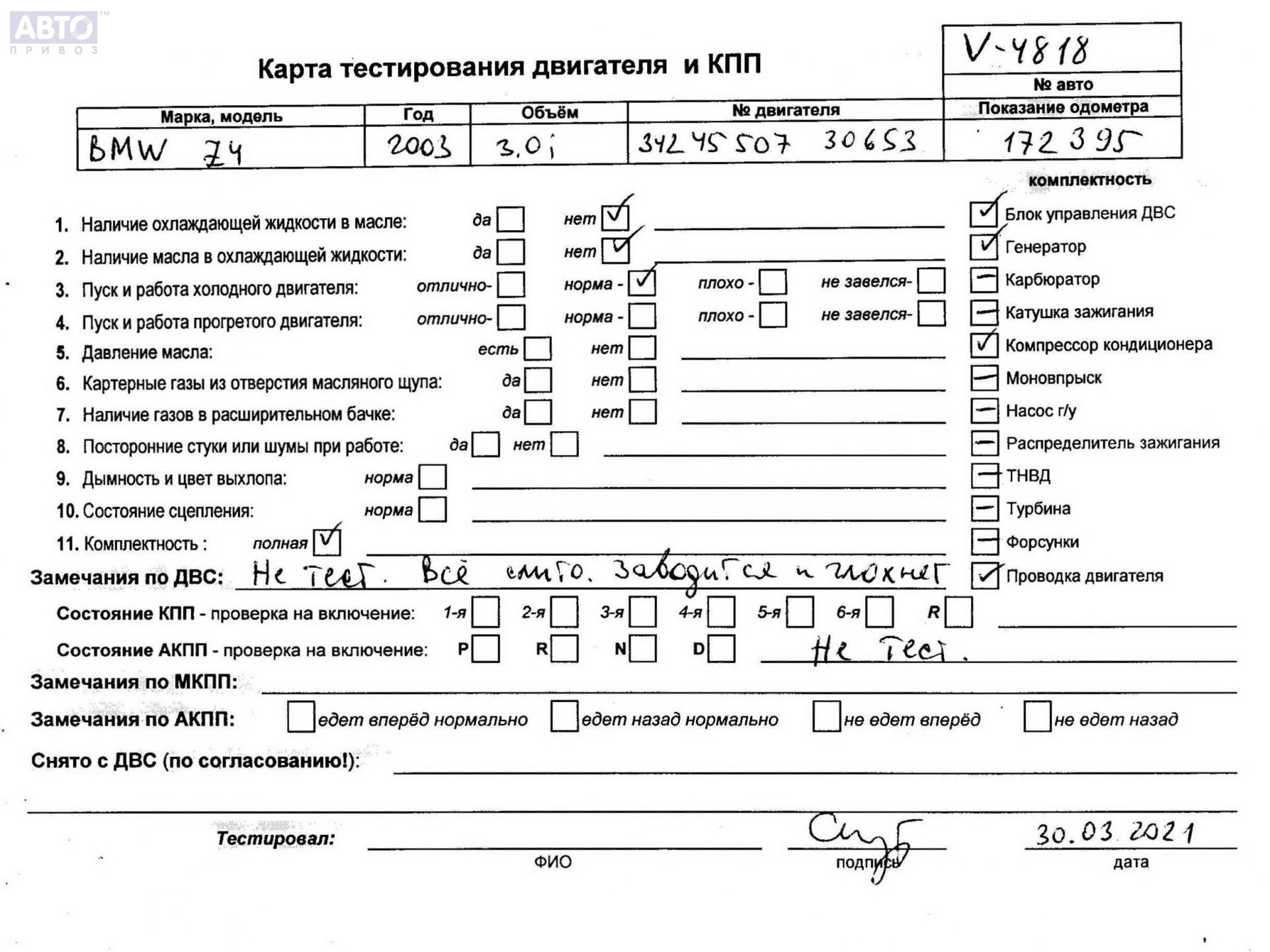 | Марка / Модель / Год: | BMW Z4 E85/E86 (2002-2008) 2003 |