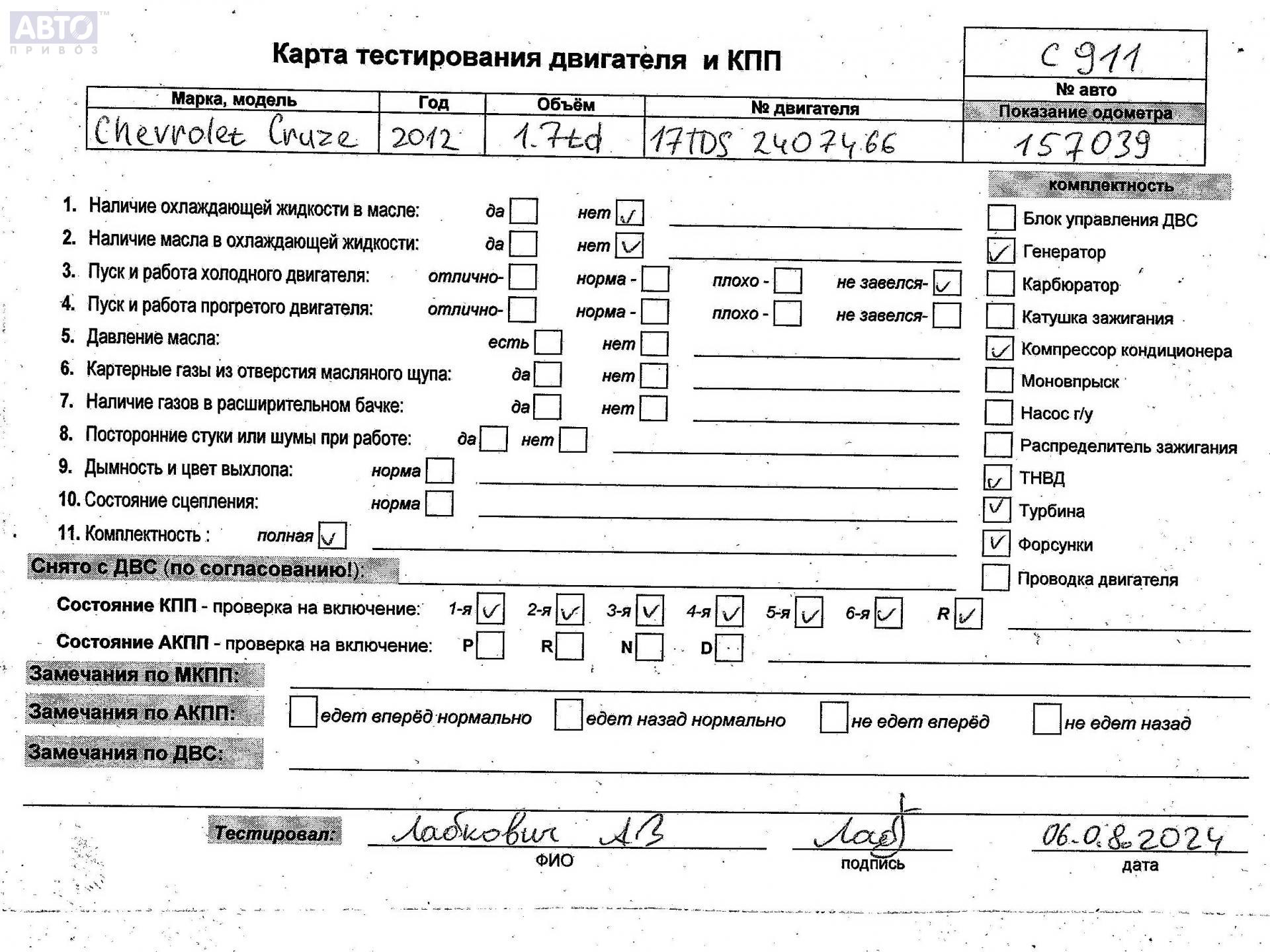| Марка / Модель / Год: | Chevrolet Cruze 2012 |