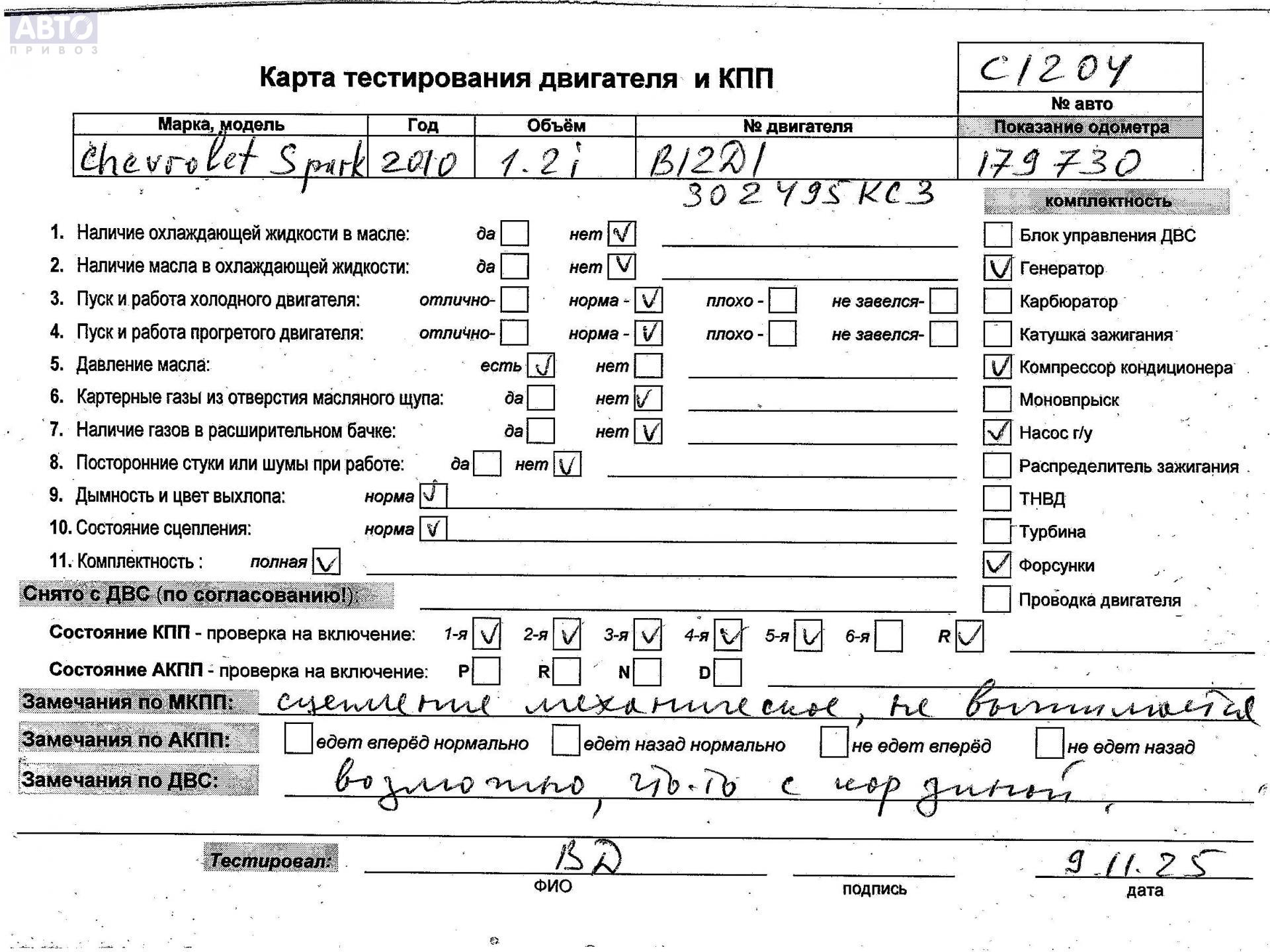 | Марка / Модель / Год: | Chevrolet Spark 2010 |