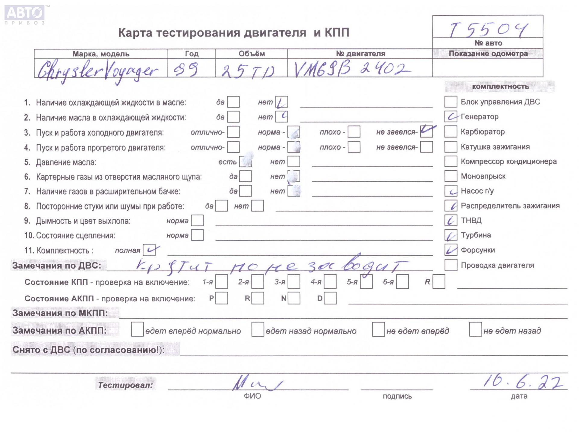 | Марка / Модель / Год: | Chrysler Voyager (1996-2000) 1999 |