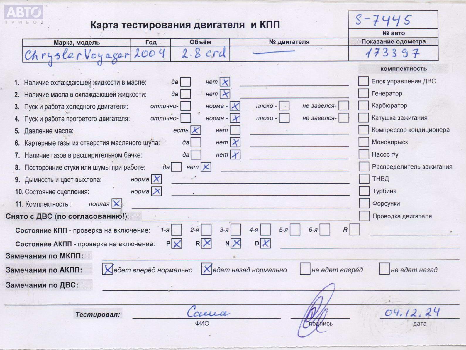 | Марка / Модель / Год: | Chrysler Voyager (2001-2007) 2004 |