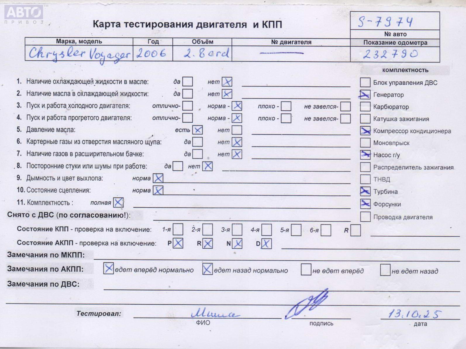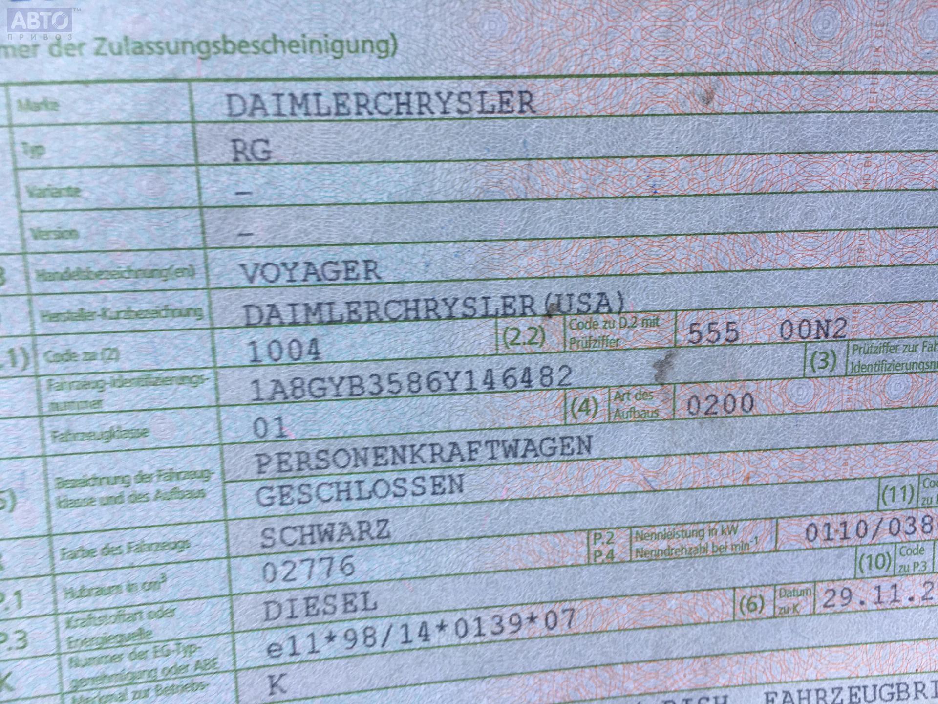 | Марка / Модель / Год: | Chrysler Voyager (2001-2007) 2006 |