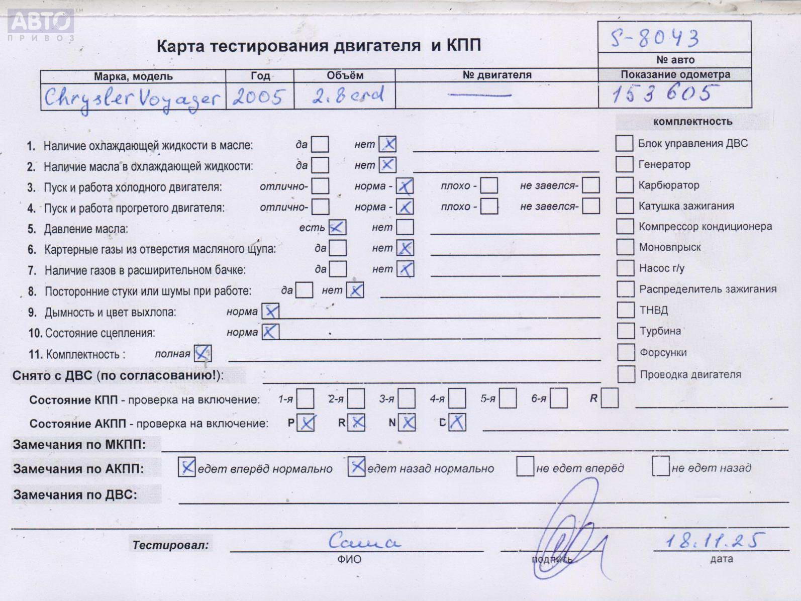 | Марка / Модель / Год: | Chrysler Voyager (2001-2007) 2005 |