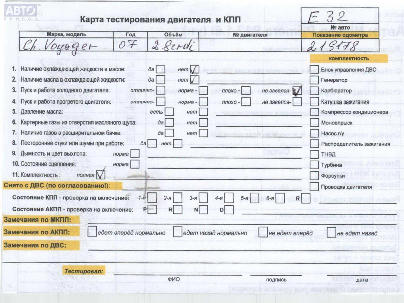 | Марка / Модель / Год: | Chrysler Voyager (2001-2007) 2007 |