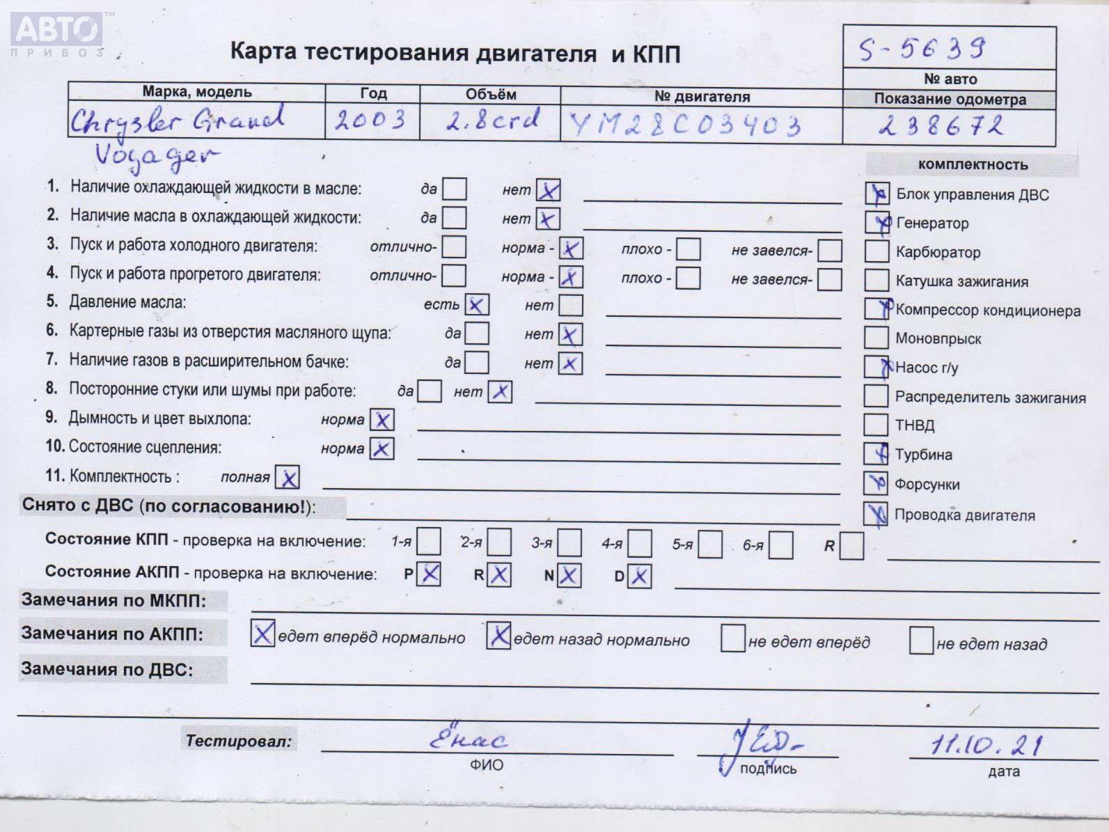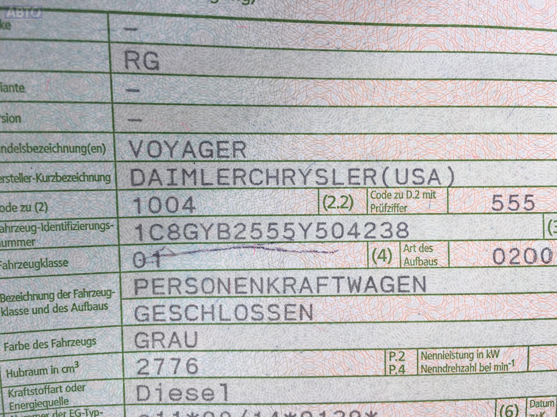 | Марка / Модель / Год: | Chrysler Voyager (2001-2007) 2004 |