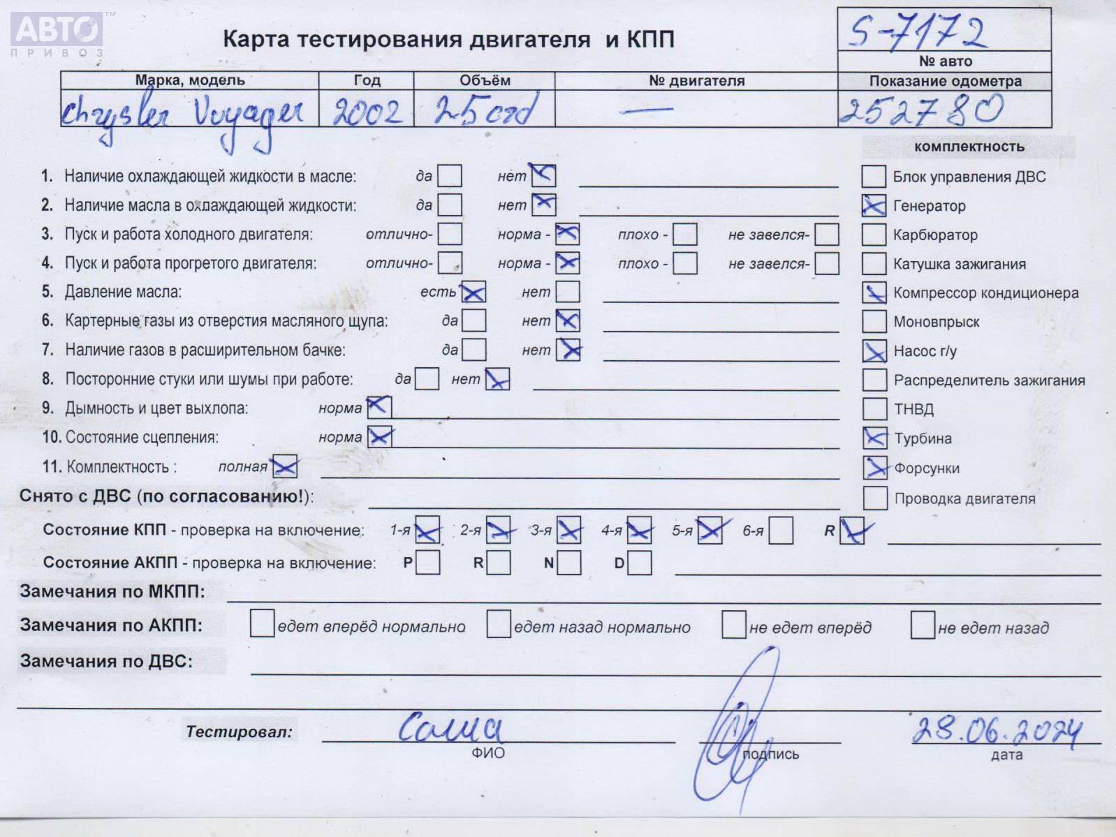 | Марка / Модель / Год: | Chrysler Voyager (2001-2007) 2002 |