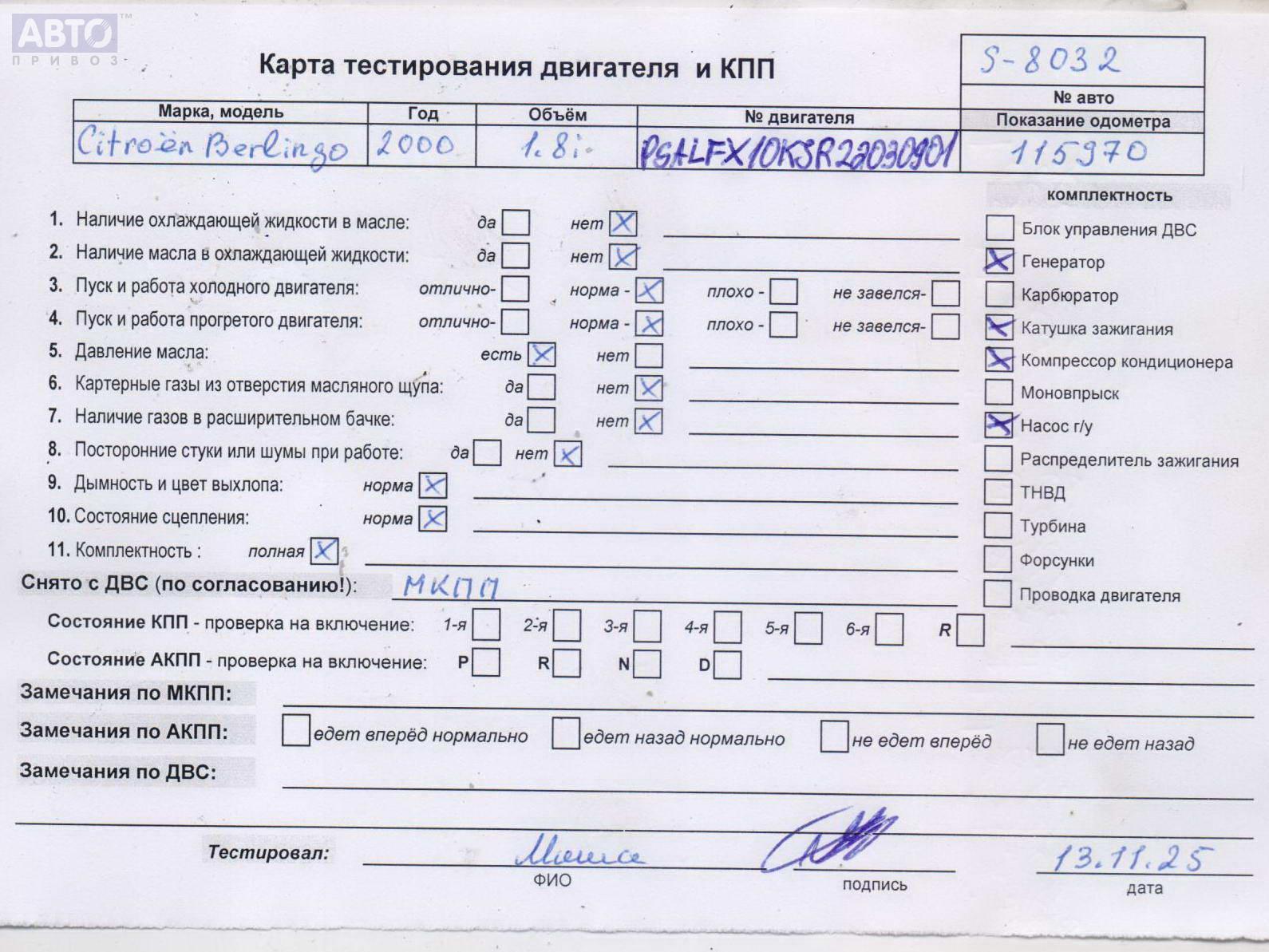 | Марка / Модель / Год: | Citroen Berlingo (1996-2002) 2000 |
