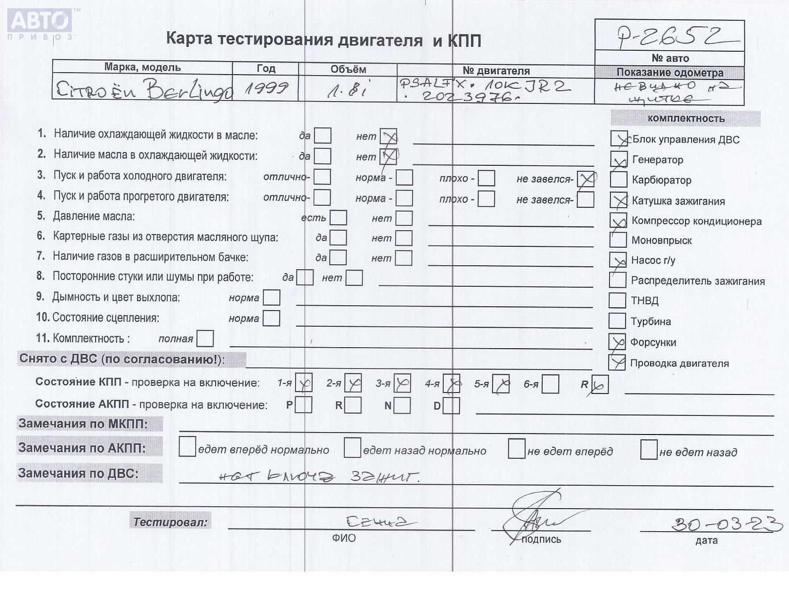 | Марка / Модель / Год: | Citroen Berlingo (1996-2002) 1999 |