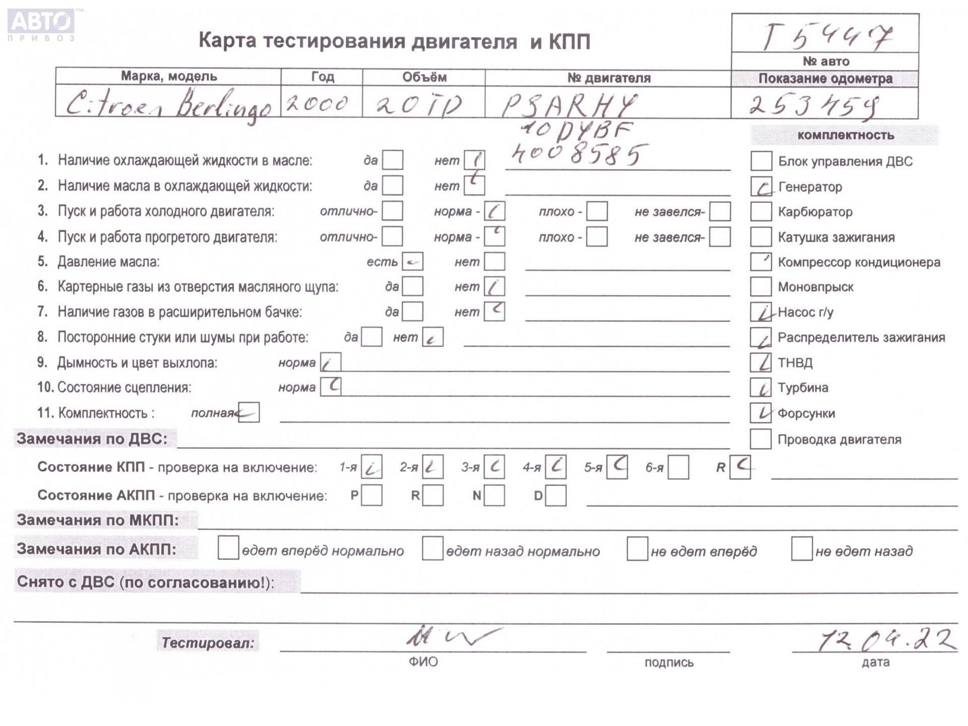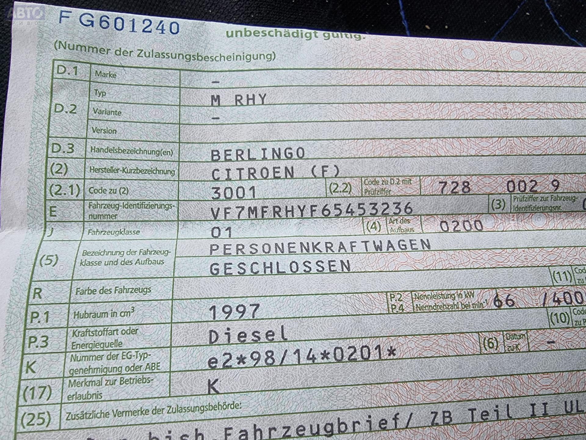 | Марка / Модель / Год: | Citroen Berlingo (1996-2002) 2000 |