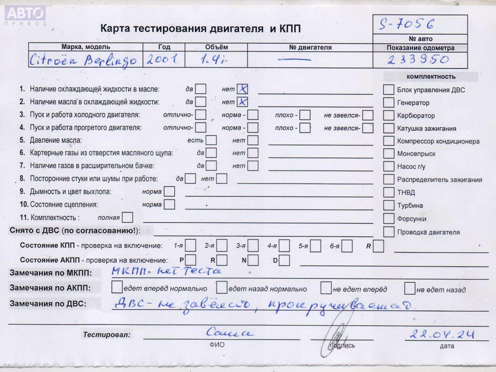 | Марка / Модель / Год: | Citroen Berlingo (1996-2002) 2001 |
