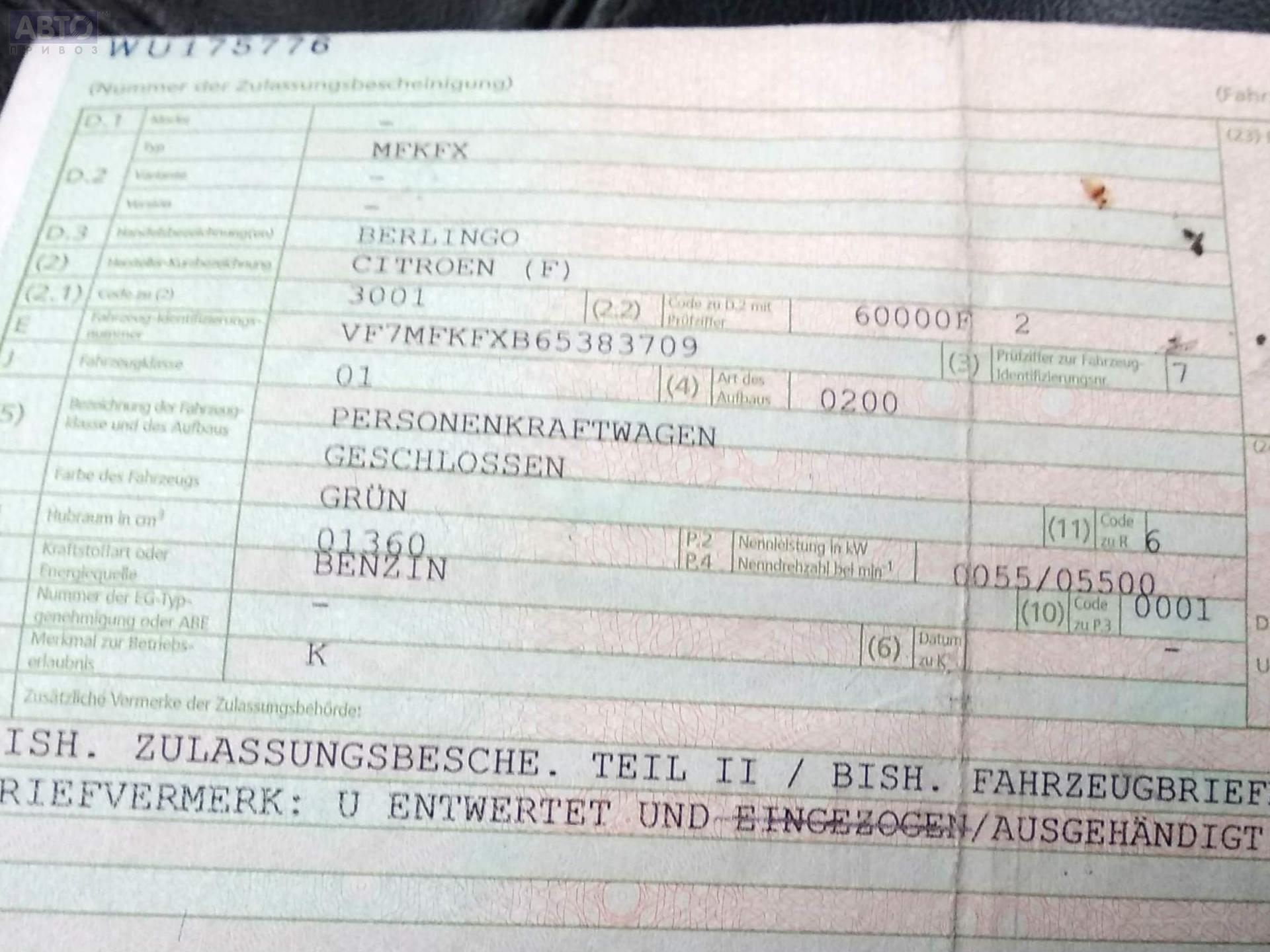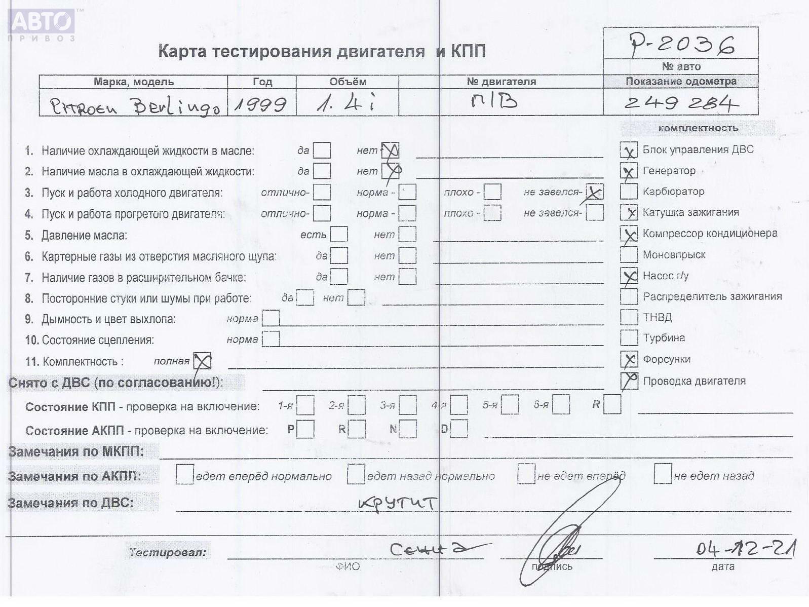 | Марка / Модель / Год: | Citroen Berlingo (1996-2002) 1999 |