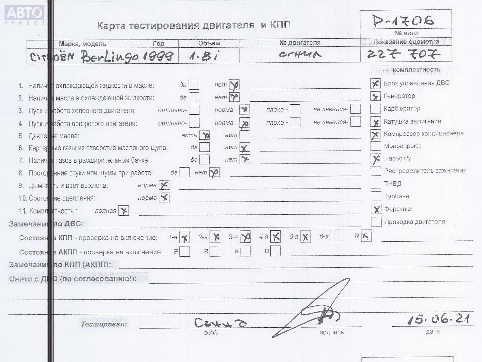 | Марка / Модель / Год: | Citroen Berlingo (1996-2002) 1999 |