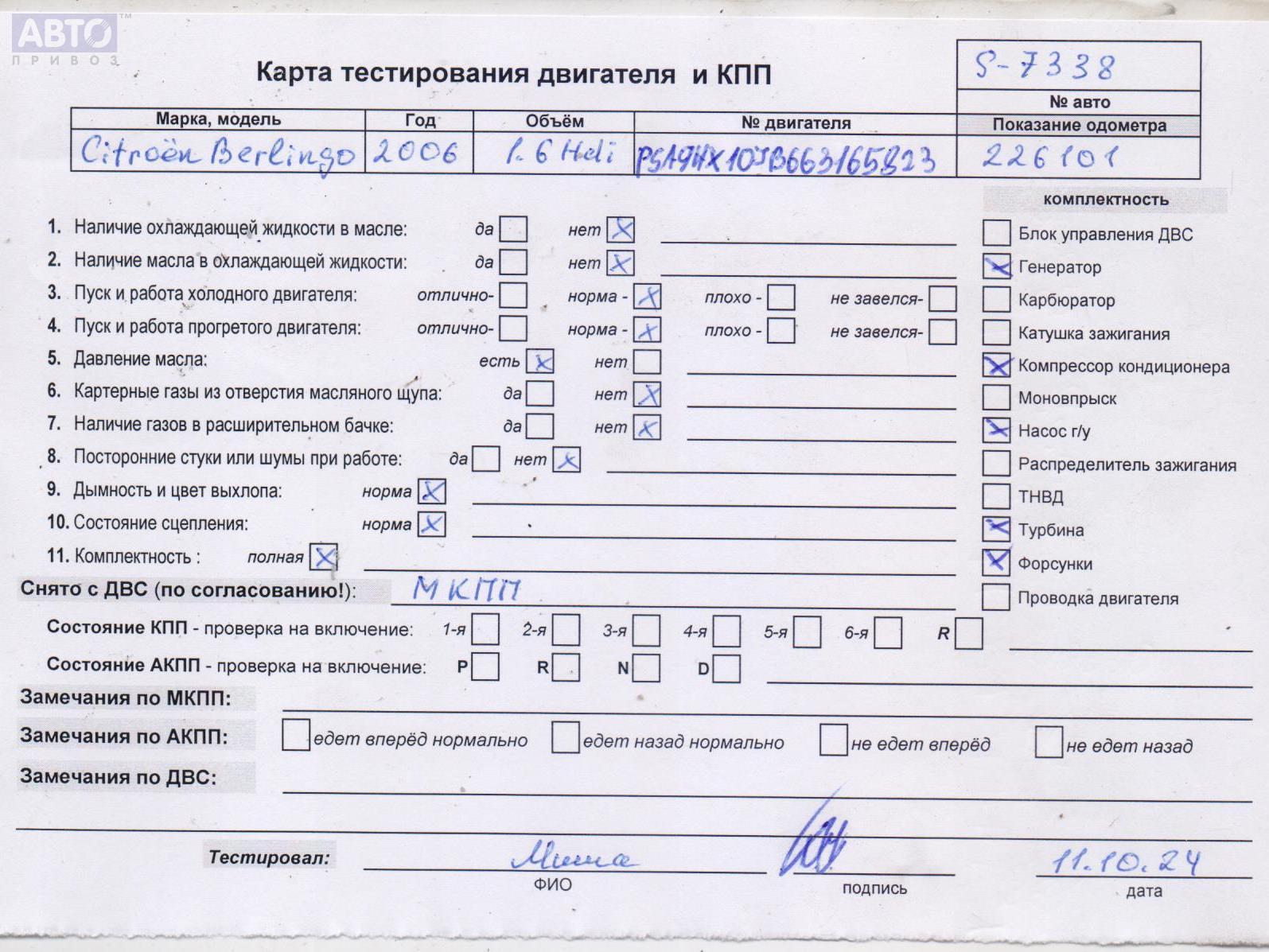 | Марка / Модель / Год: | Citroen Berlingo (2003-2007) 2006 |