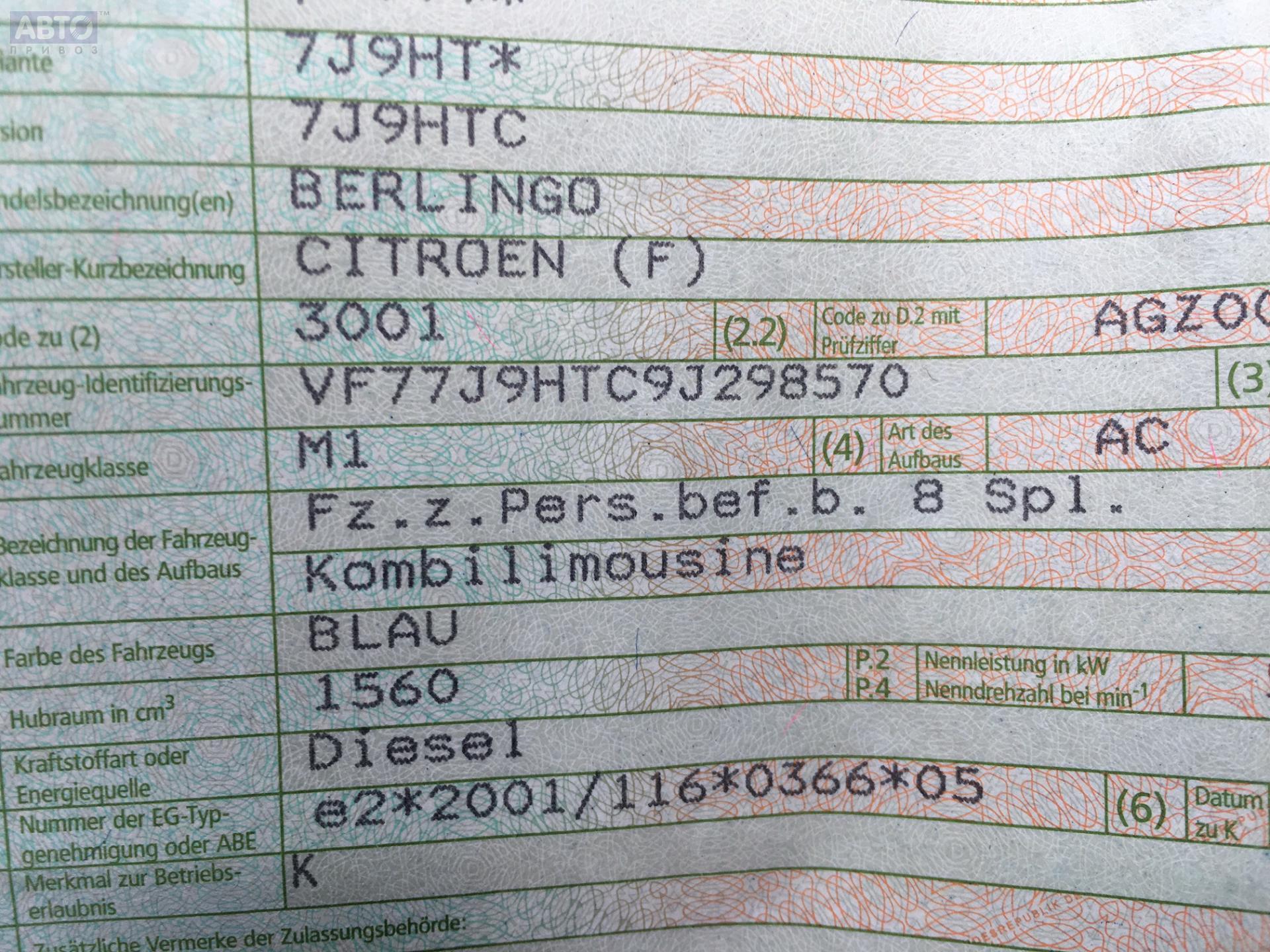 | Марка / Модель / Год: | Citroen Berlingo B9 (2008- ) 2010 |