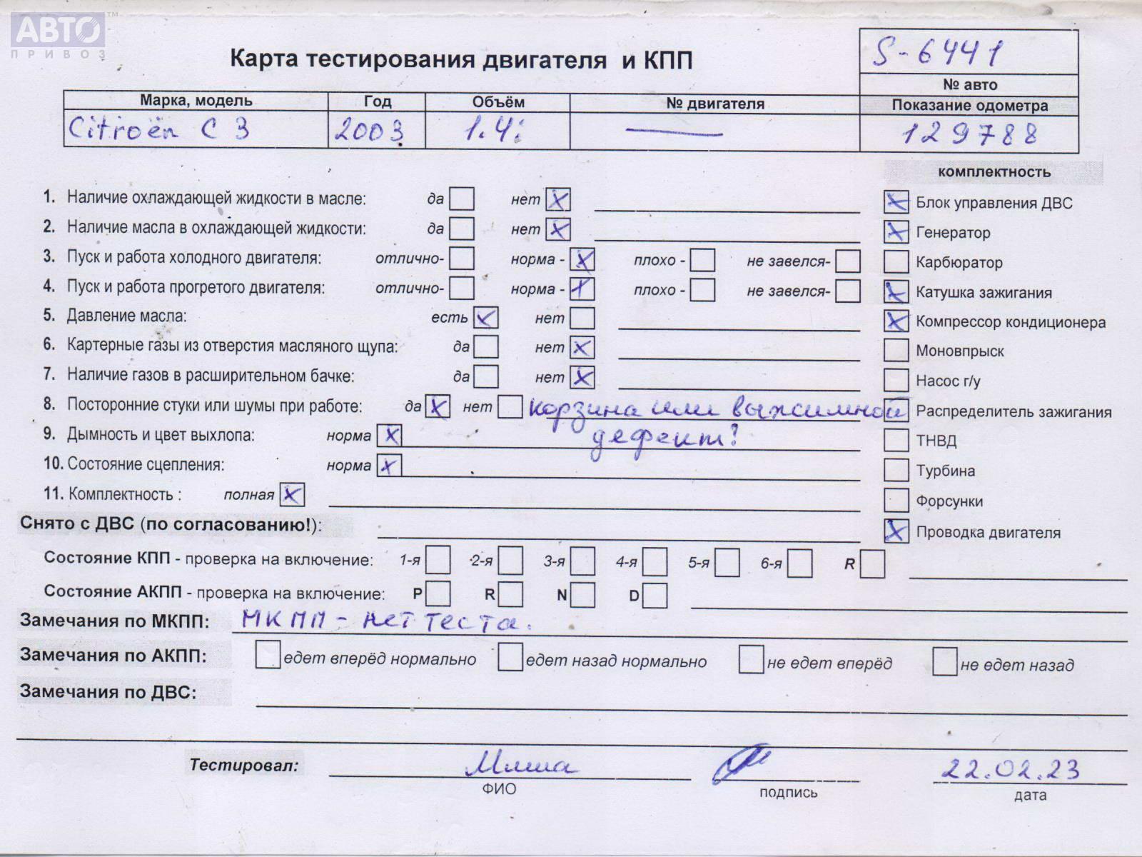 | Автомобиль / VIN: | S6441 VF7FCKFVC26796410 |
