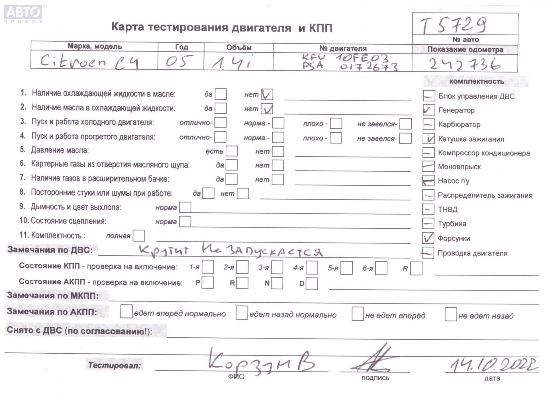 | Автомобиль / VIN: | T5729 VF7LAKFUC74322789 |