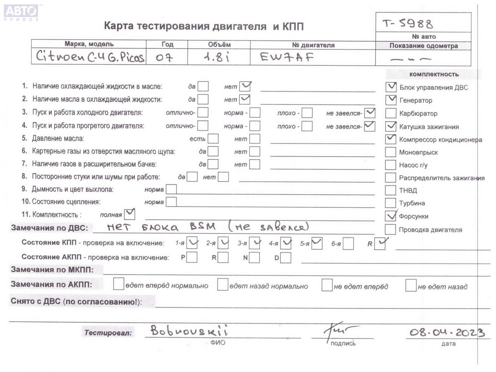 | Автомобиль / VIN: | T5988 VF7UA6FYC45020997 |