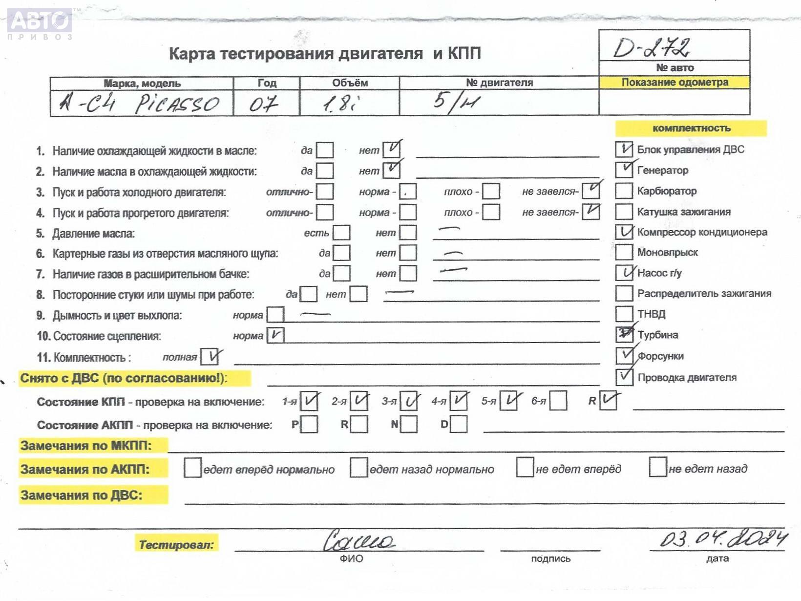 | Марка / Модель / Год: | Citroen C4 Grand Picasso 2007 |