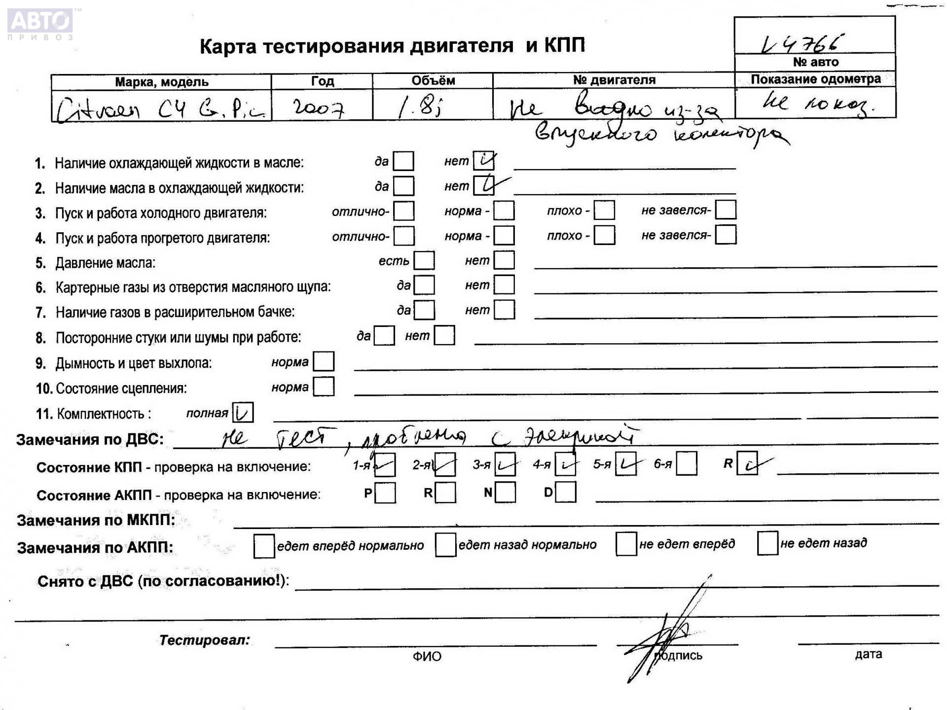 | Марка / Модель / Год: | Citroen C4 Grand Picasso 2007 |