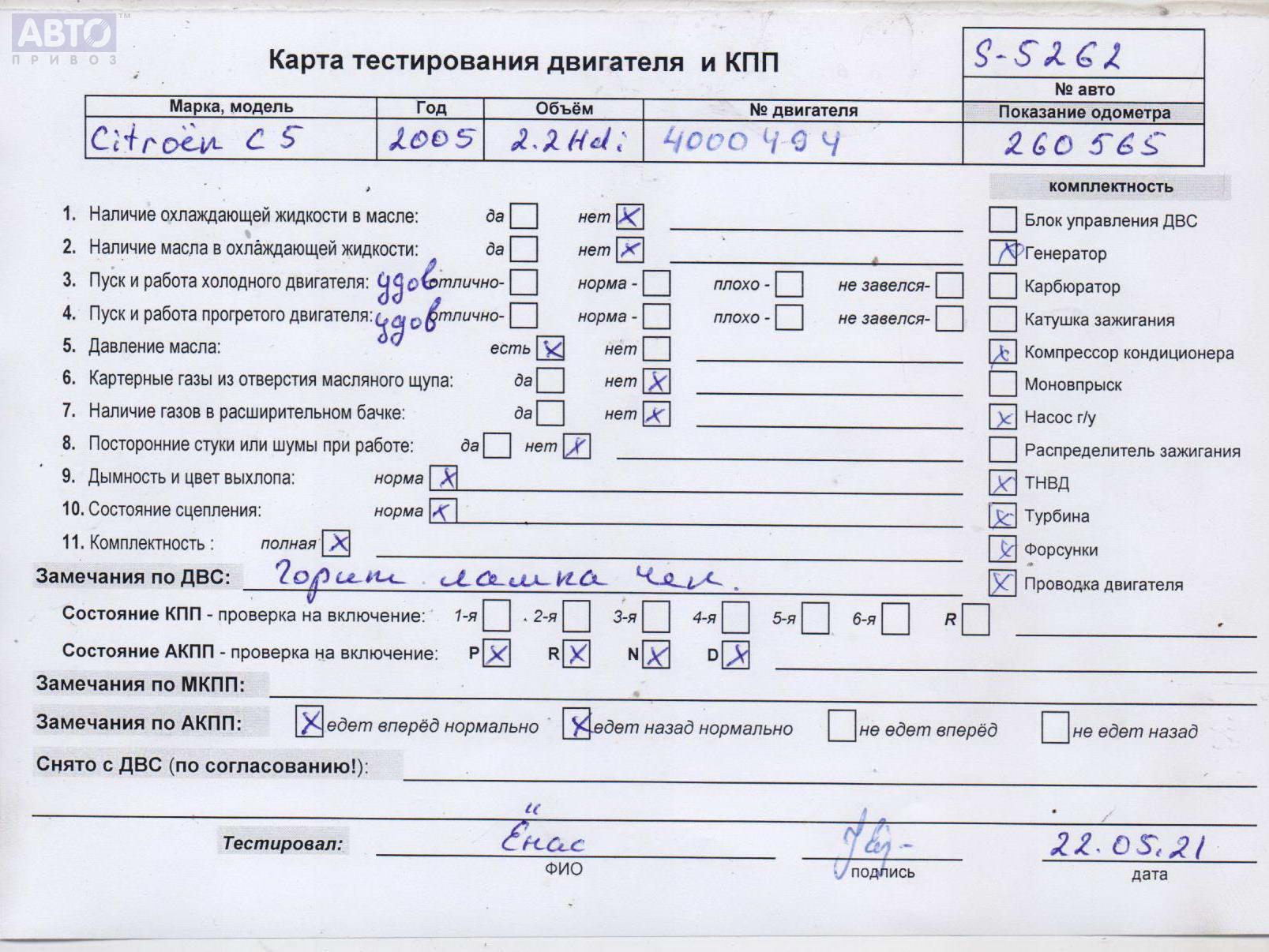 | Марка / Модель / Год: | Citroen C5 (2001-2008) 2005 |