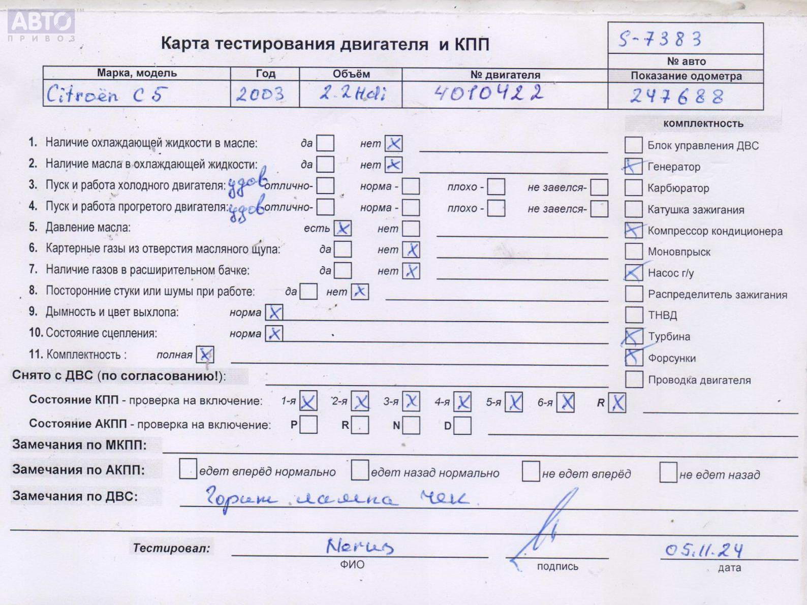 | Марка / Модель / Год: | Citroen C5 (2001-2008) 2003 |