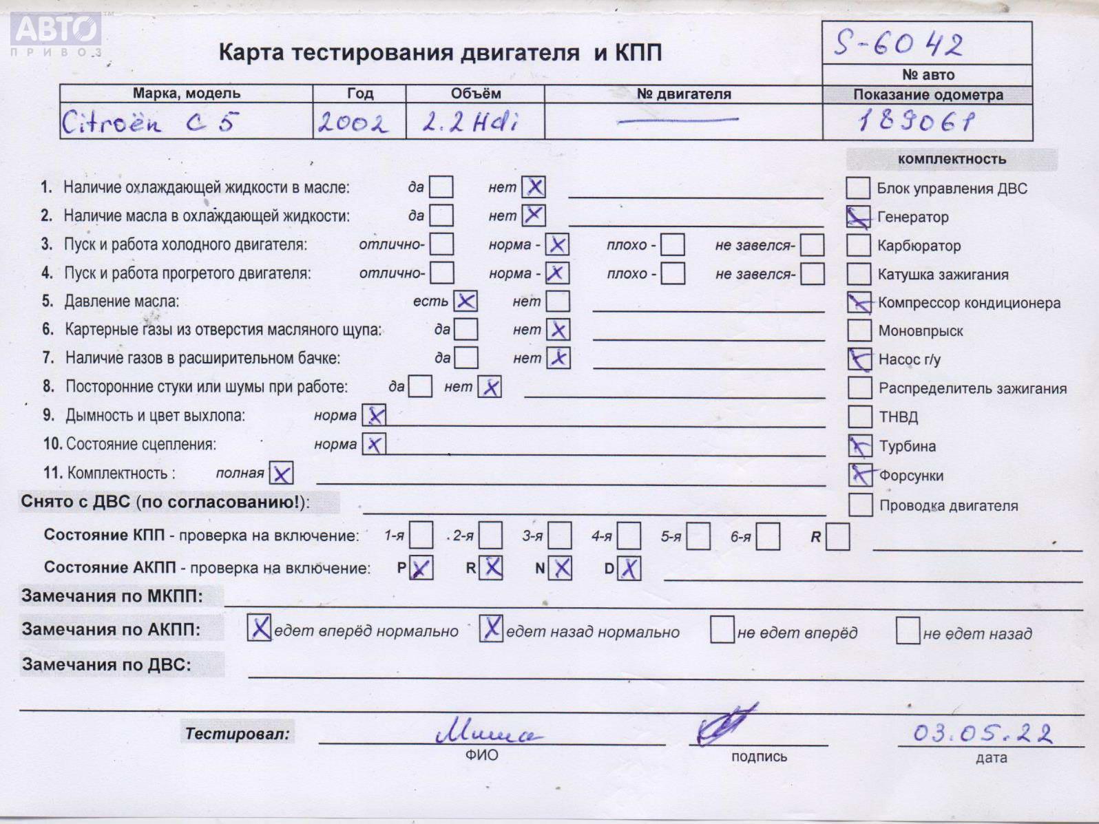 | Марка / Модель / Год: | Citroen C5 (2001-2008) 2003 |
