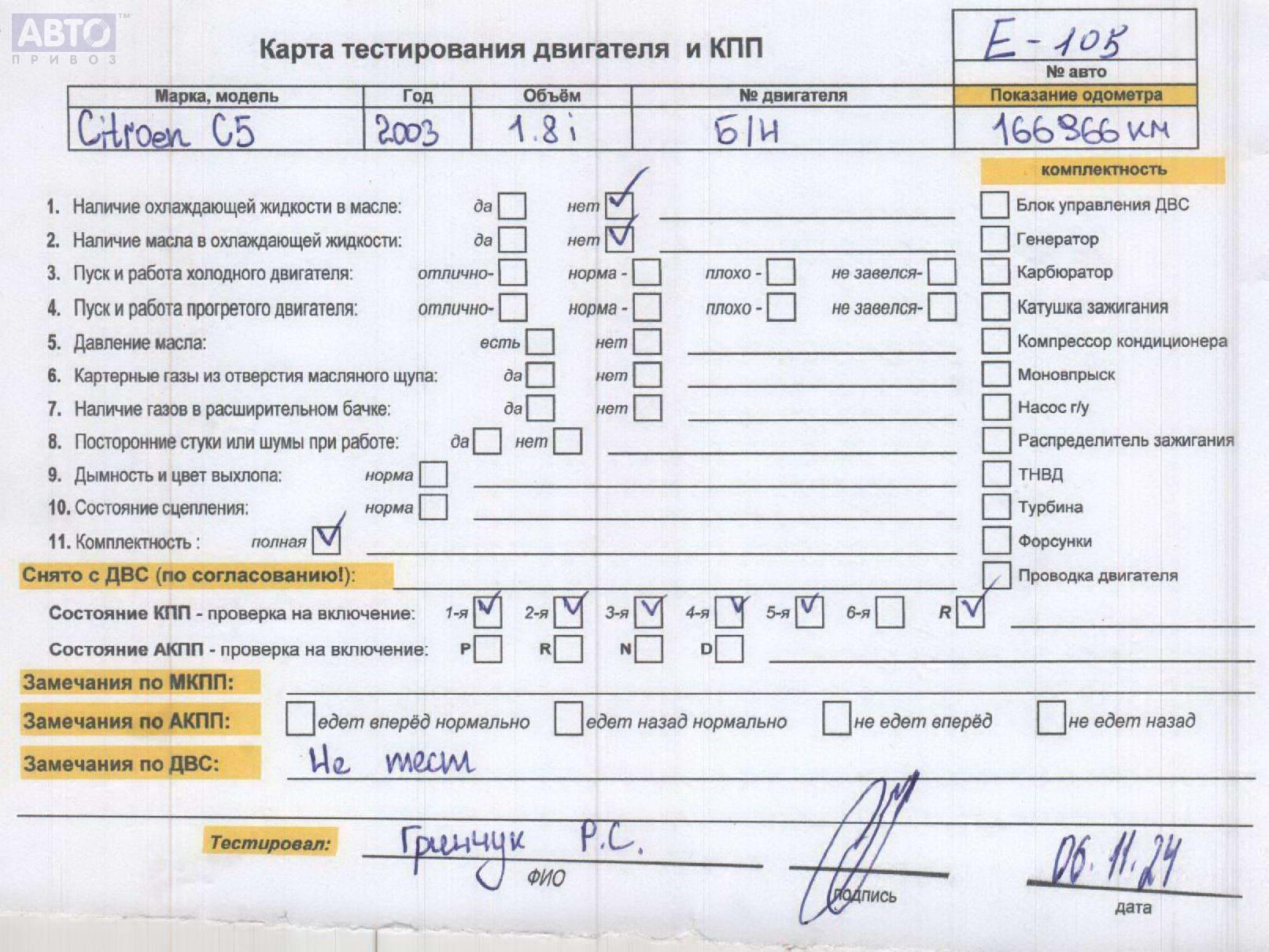 | Марка / Модель / Год: | Citroen C5 (2001-2008) 2003 |
