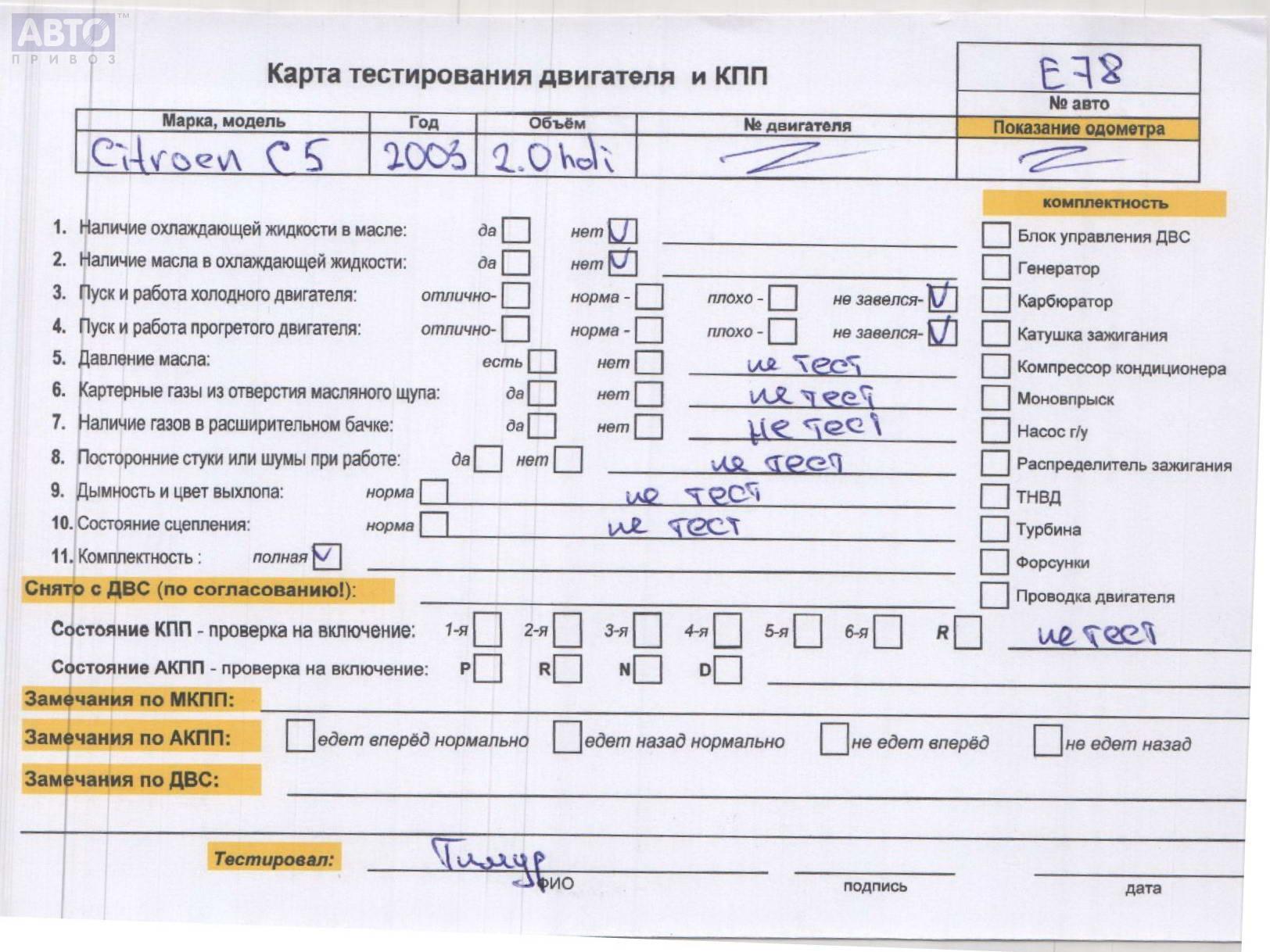| Марка / Модель / Год: | Citroen C5 (2001-2008) 2003 |