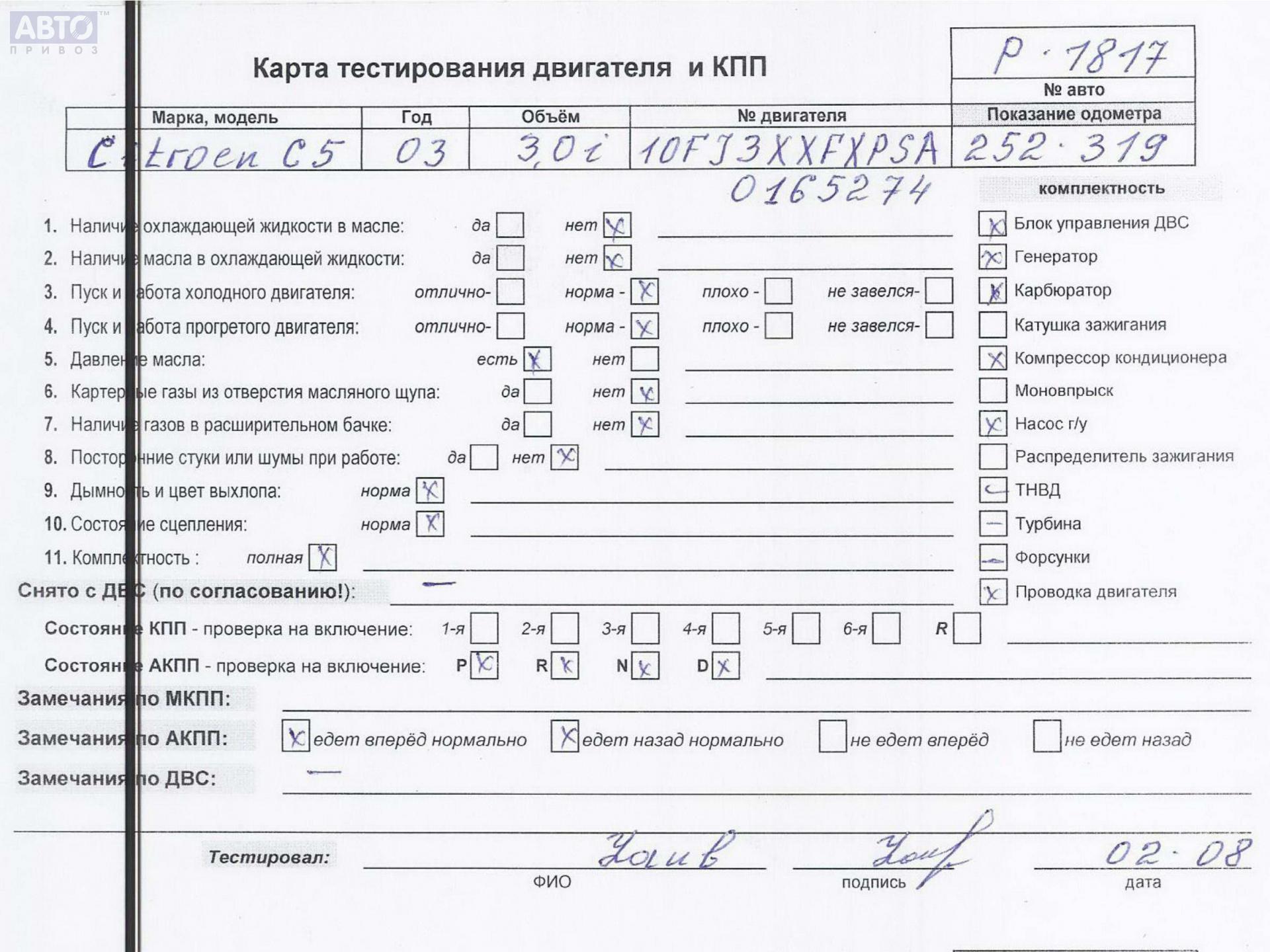 | Марка / Модель / Год: | Citroen C5 (2001-2008) 2003 |