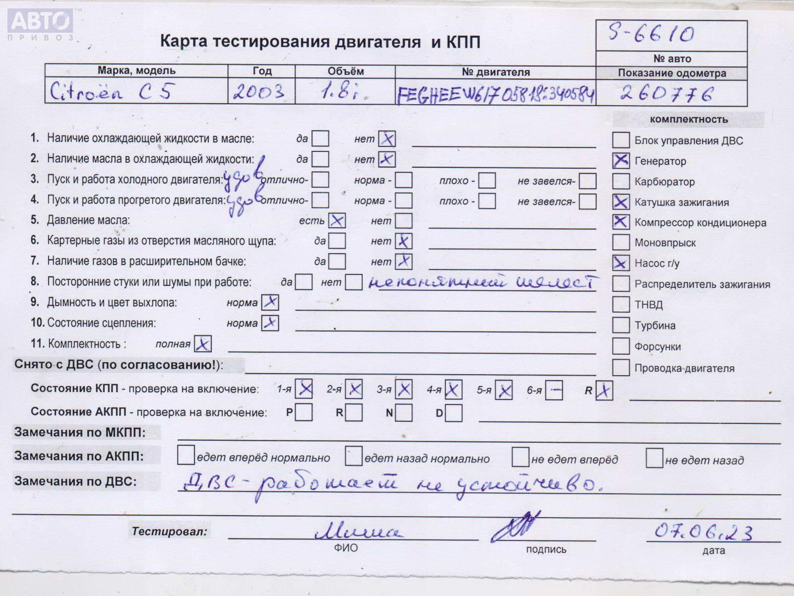 | Автомобиль / VIN: | S6610 VF7DE6FZC76416208 |