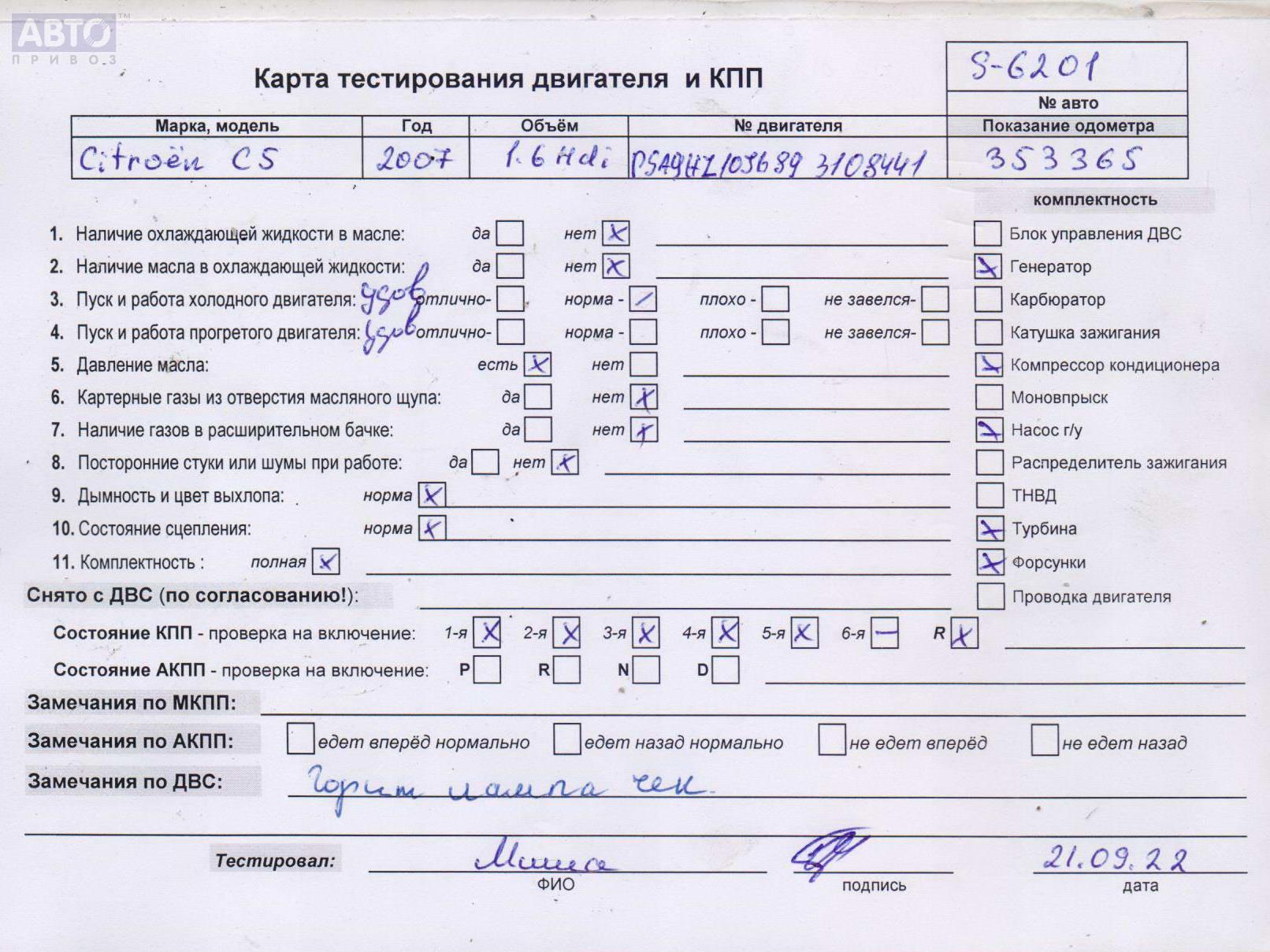 | Марка / Модель / Год: | Citroen C5 (2001-2008) 2007 |