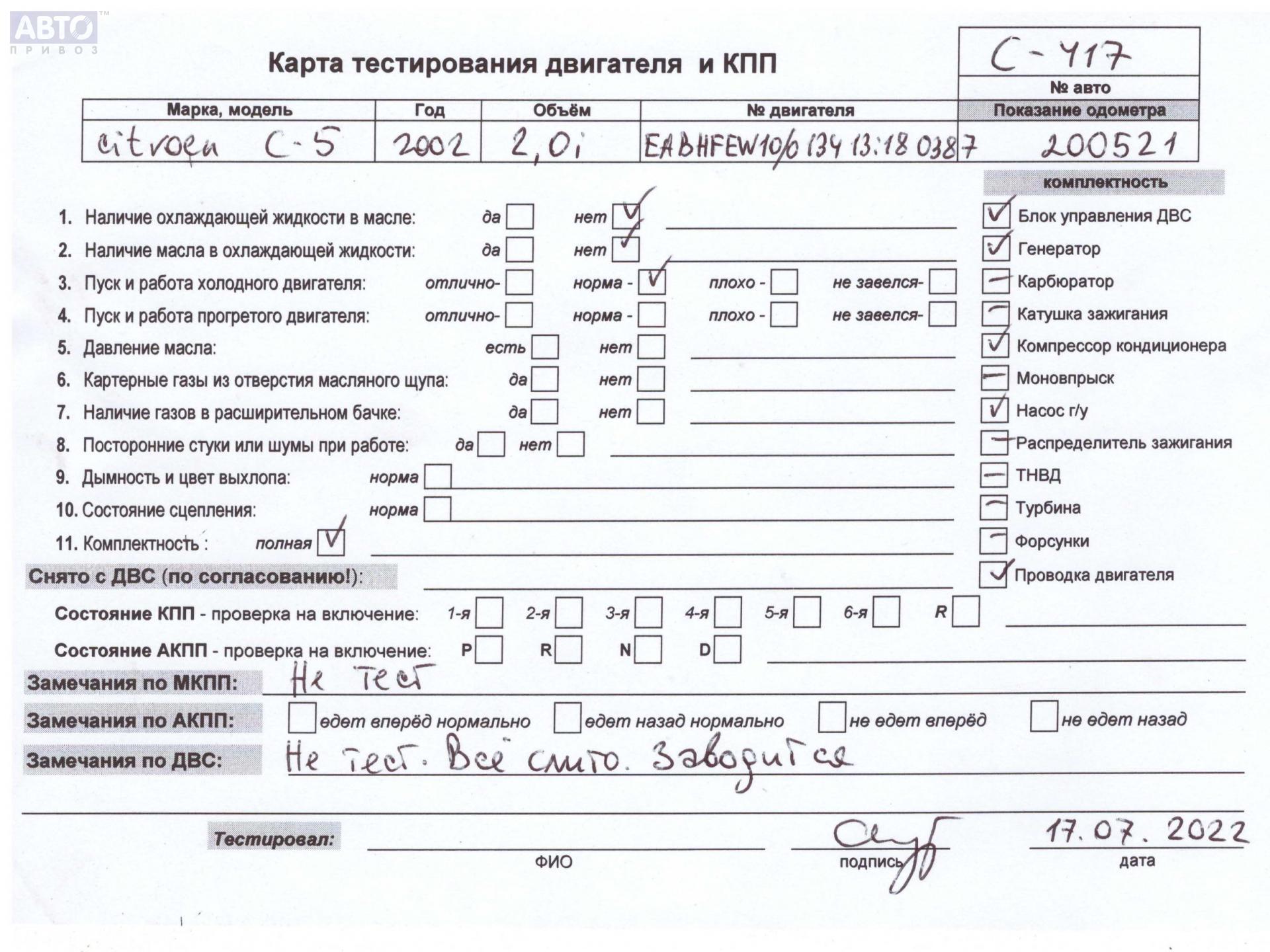 | Марка / Модель / Год: | Citroen C5 (2001-2008) 2002 |