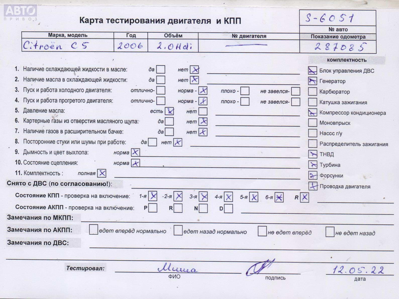 | Марка / Модель / Год: | Citroen C5 (2001-2008) 2006 |